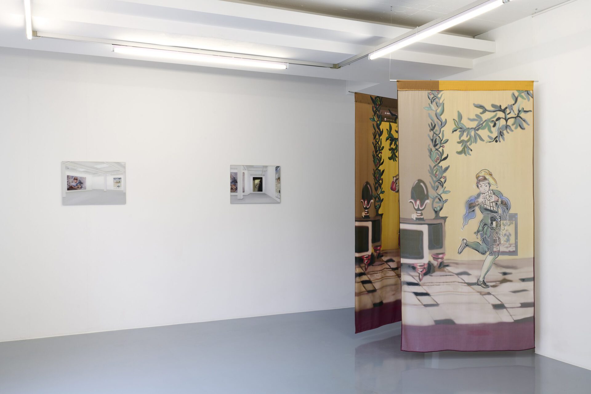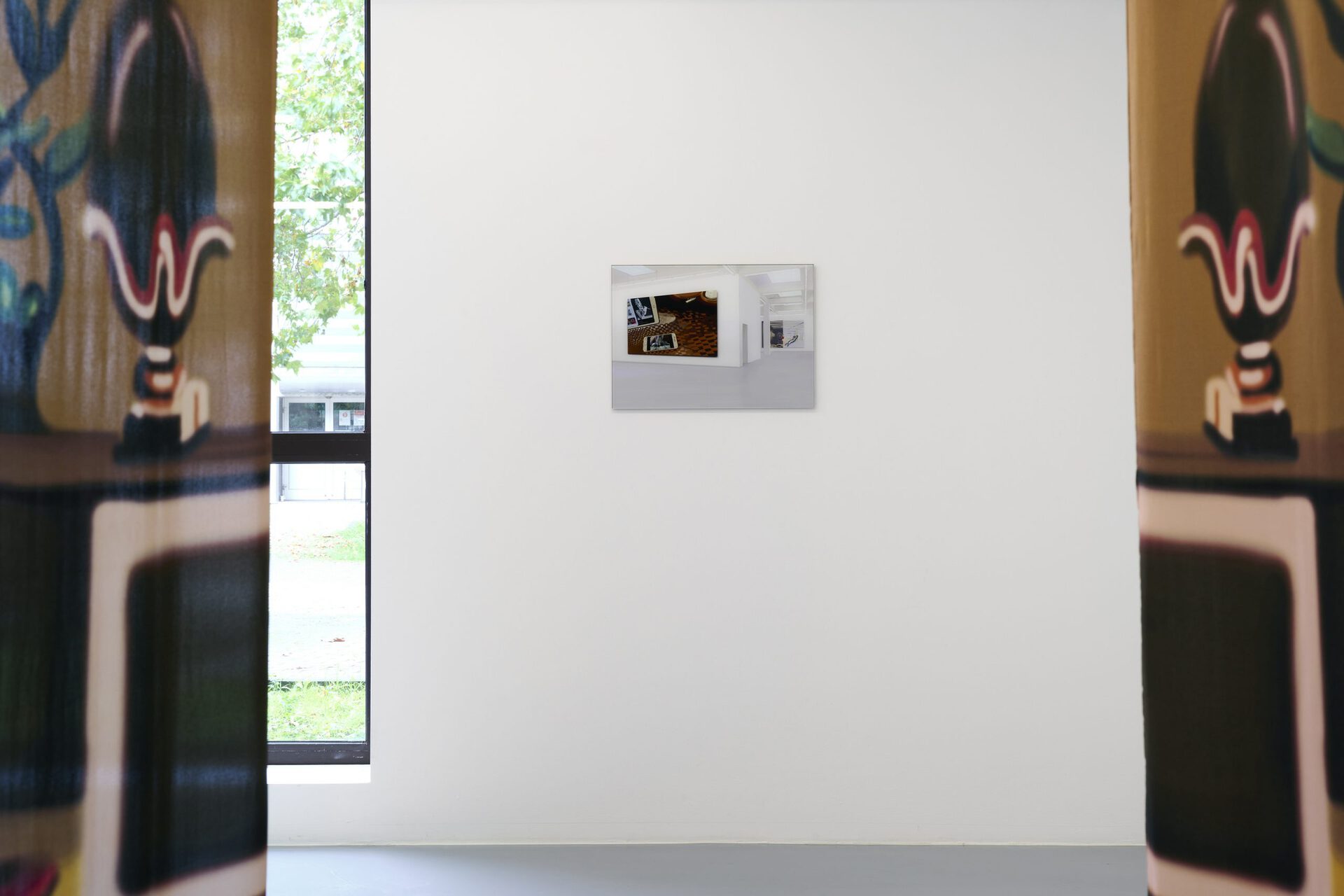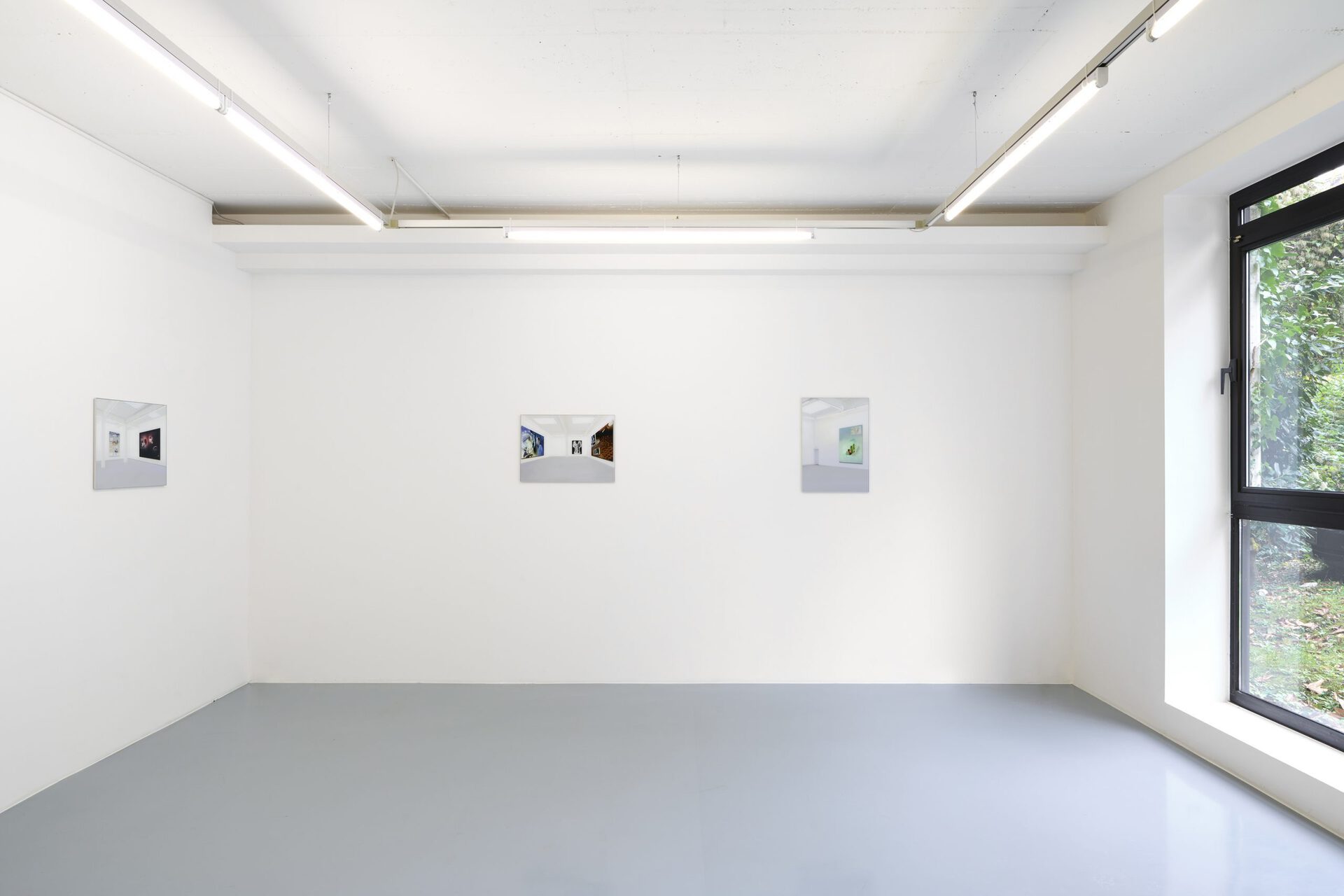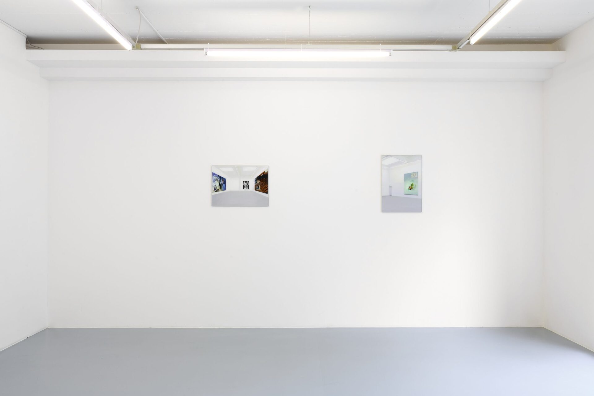 Los places some of these pictures in a wider pictorial space. For this, she uses the image genre of the digital installation view as it circulates on online portals and social media channels. Following the photographic conventions of depiction, Los inserts the images perspectively in such a way that they reveal fragmented views of the Bonner Kunstverein’s large exhibition hall. The result is a virtual form of presentation of Los' works in the space of the large exhibition hall, which the artist appropriates without actually exhibiting in them. It is a gesture that manifests itself as a subtle rupture because it draws attention to the differences between the exhibition hall and the foyer space and the framework conditions of the institution. In this way, Los makes it clear that this particular area between “What do I want?” and “What can I do?” is always permeable.