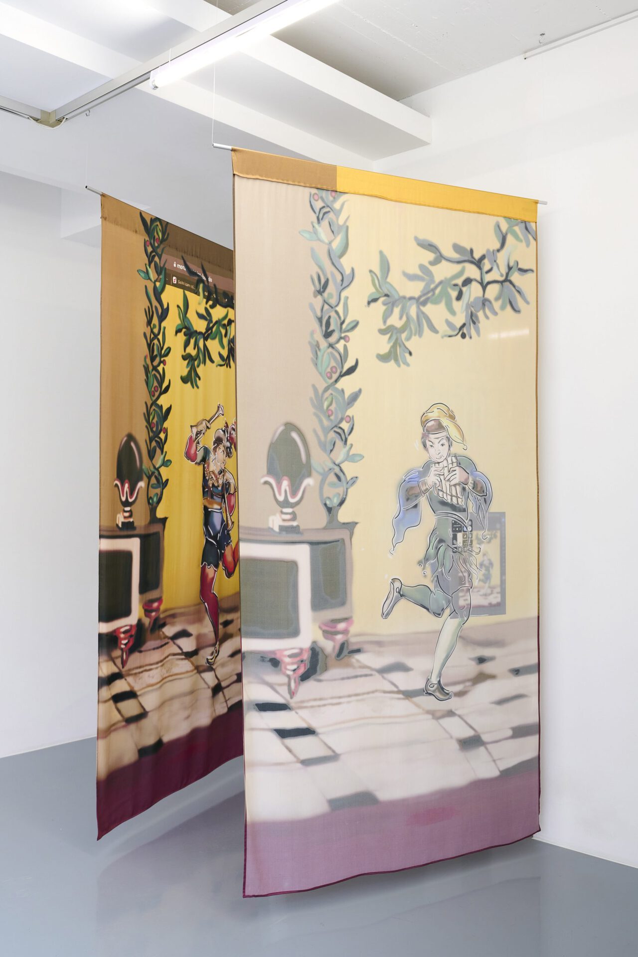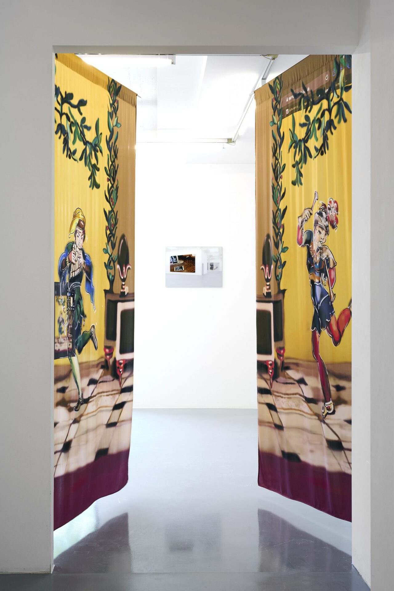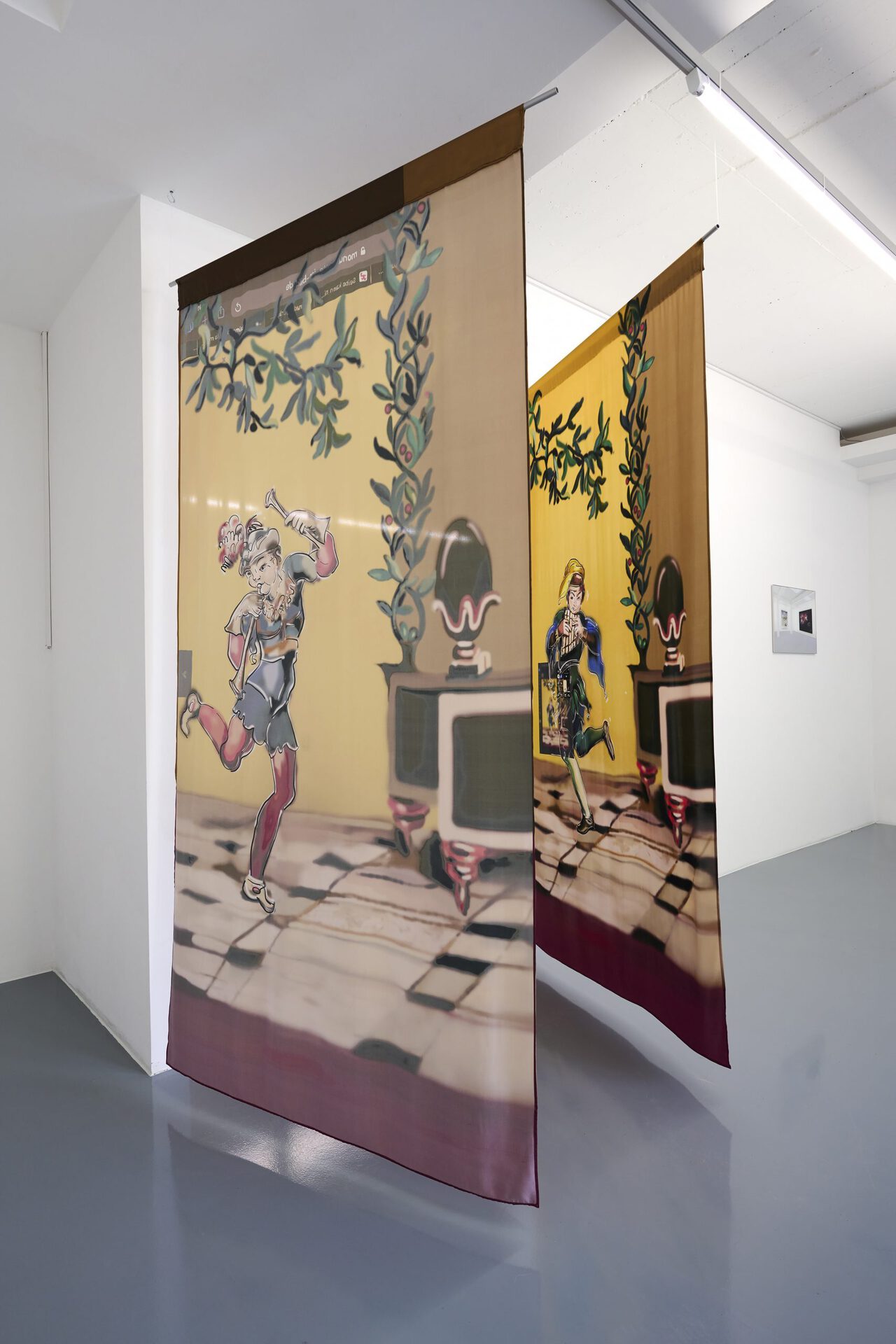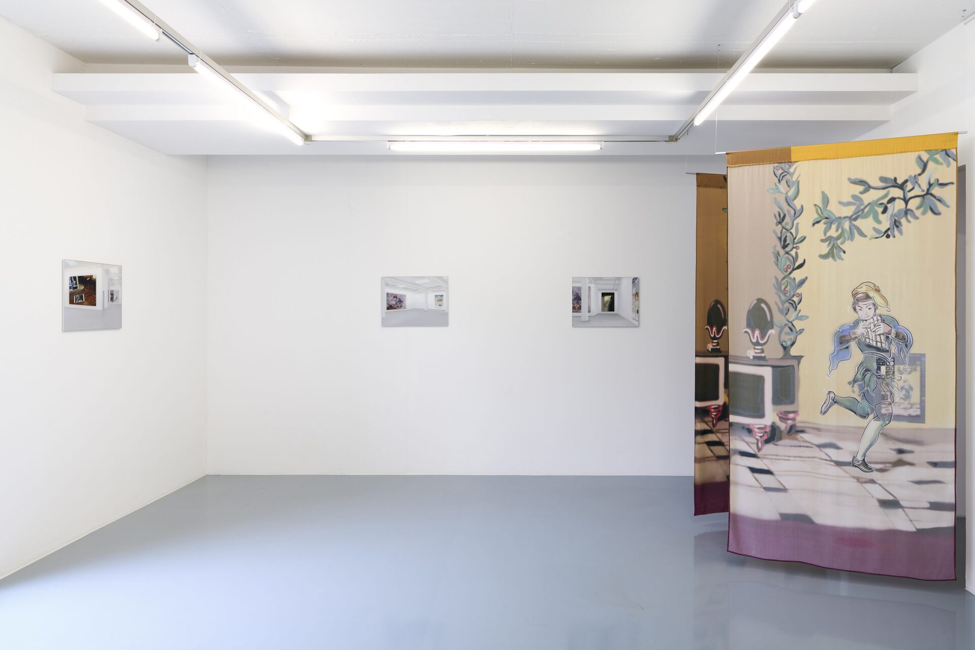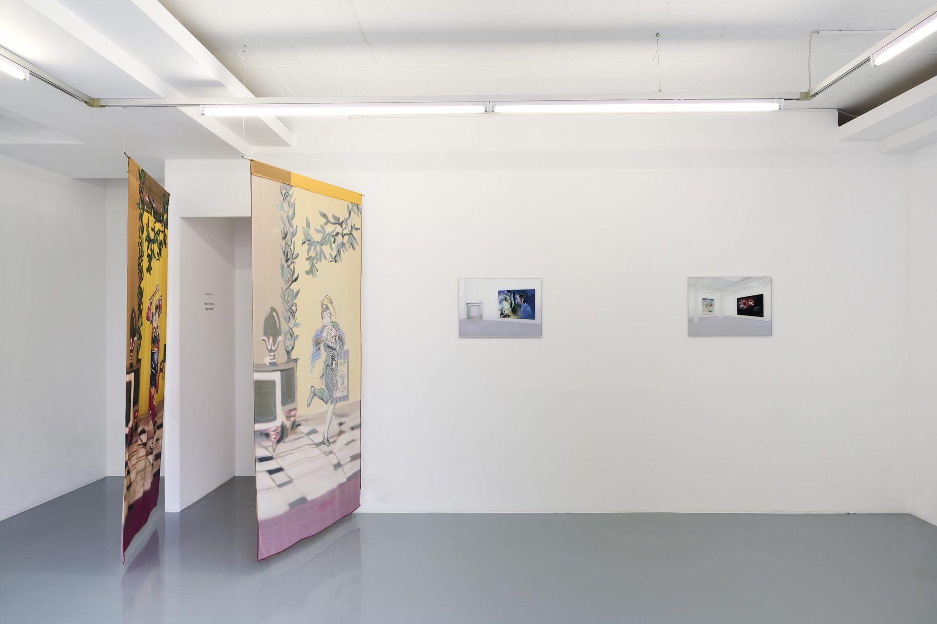 Los places some of these pictures in a wider pictorial space. For this, she uses the image genre of the digital installation view as it circulates on online portals and social media channels. Following the photographic conventions of depiction, Los inserts the images perspectively in such a way that they reveal fragmented views of the Bonner Kunstverein’s large exhibition hall. The result is a virtual form of presentation of Los' works in the space of the large exhibition hall, which the artist appropriates without actually exhibiting in them. It is a gesture that manifests itself as a subtle rupture because it draws attention to the differences between the exhibition hall and the foyer space and the framework conditions of the institution. In this way, Los makes it clear that this particular area between “What do I want?” and “What can I do?” is always permeable.