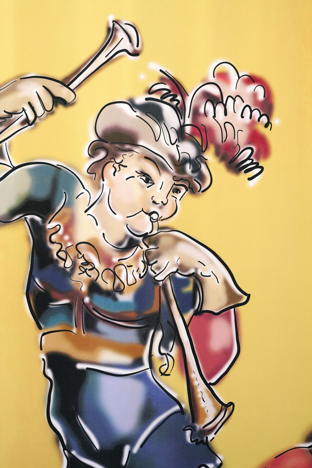 The digital painting from which Los' collaged worlds of images emerge, initially stands for an unlimited space of possibility: with the help of the iPad and various image editing programmes, the artist shifts her studio to a sphere that can be called up at any time, infinitely scaled, and zoomed in or out at will. In this multiple interweaving of different size categories and image layers, everyday views collide with private screenshots or references to popular film scenes, works of art and children's stories. Los quotes, for example, from the well-known Polish poem Chrząszcz by Jan Brzechwa - a dialogue between an ox and a beetle, whose daily humming in the grass is viewed with scepticism by the ox. When asked about the usefulness of this activity, the beetle replies in turn: “What, for what? That is work. All work is worthwhile.” Thus, the alternately surreal, comic or naturalistic motifs revolve again and again around the relationship between work, time and value, with humour and seriousness always in balance. This is also evident in the accompanying titles, such as Analysis Paralysis or When you are in your own lane, there is no traffic, which on the one hand are reminiscent of platitudes and trivial calendar idioms, while on the other they pick up on states of brokenness and crisis.