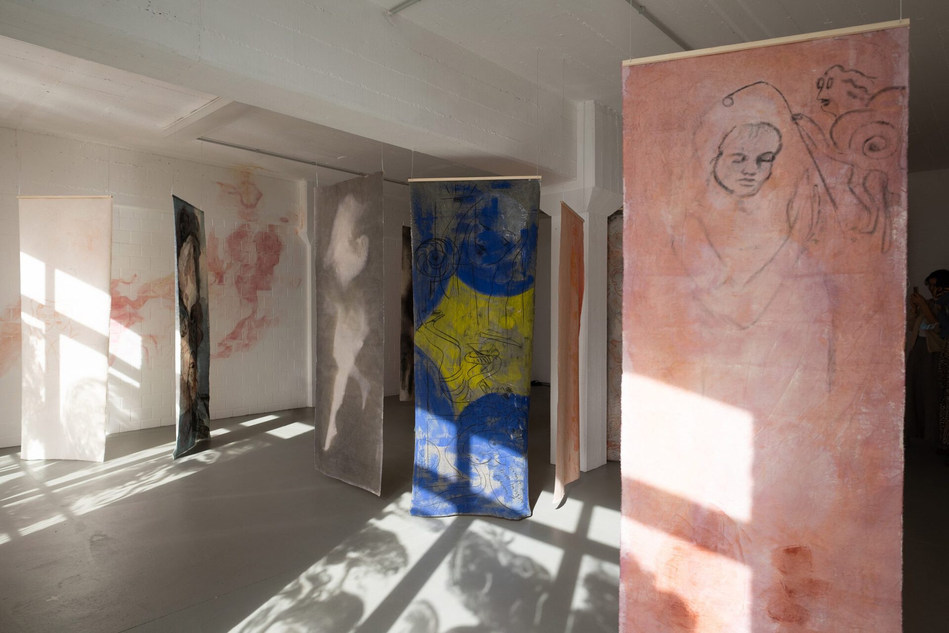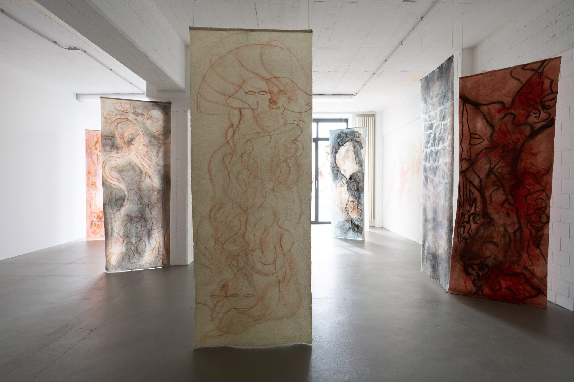 The exhibition is held in the Atelier 4.1, which is affiliated to the Kunsthalle, and presents a series of works that were developed by the artist in dialogue with the space.