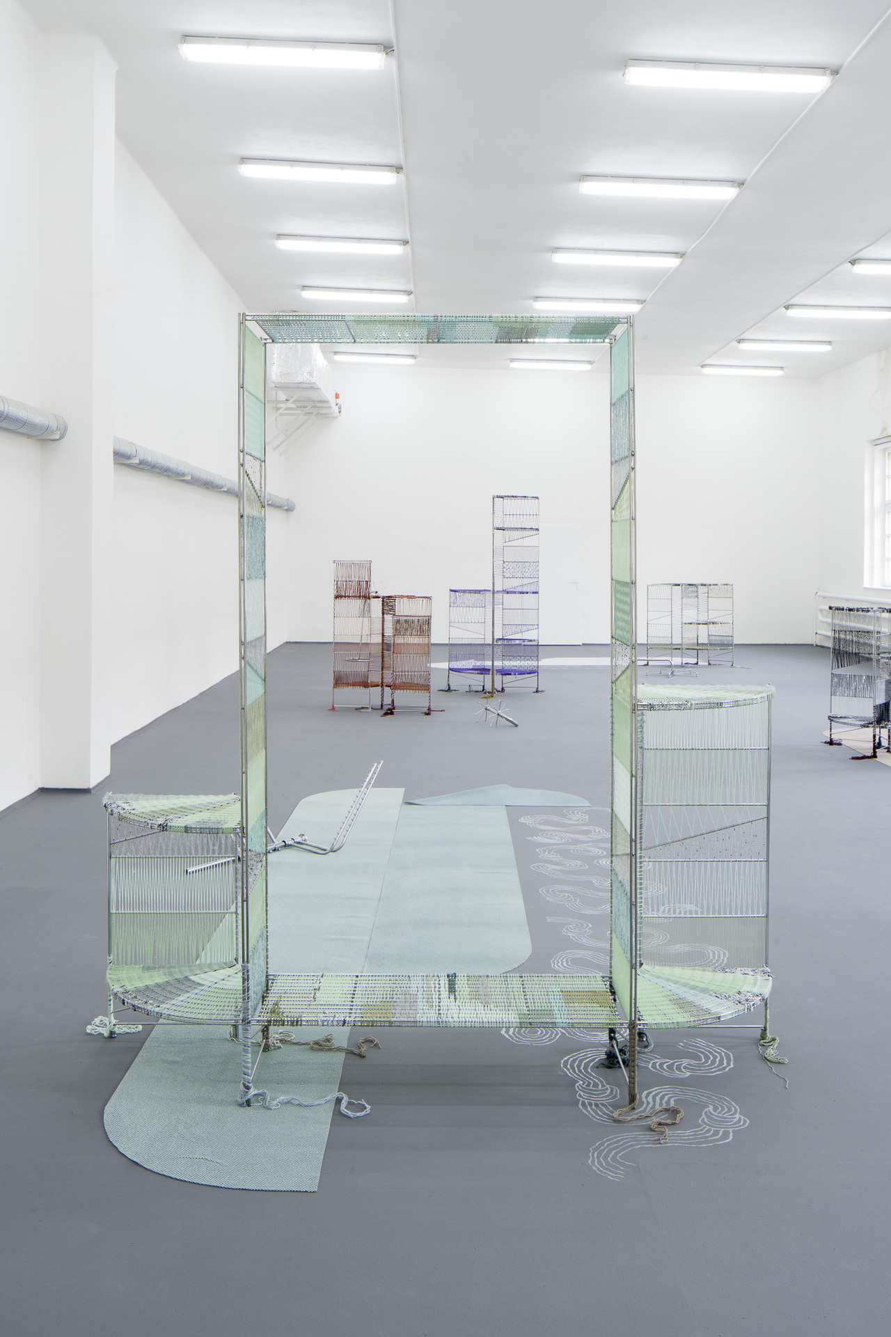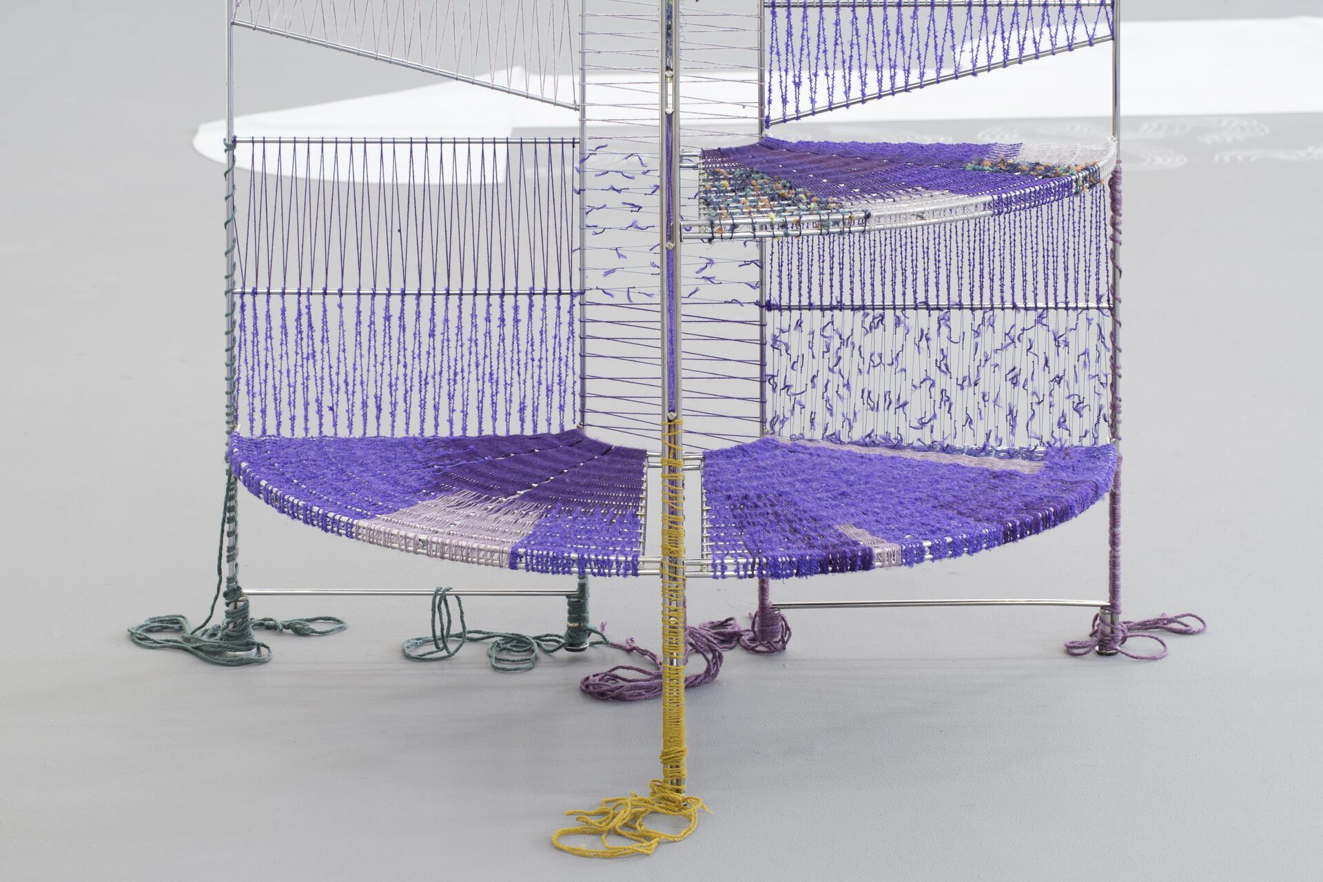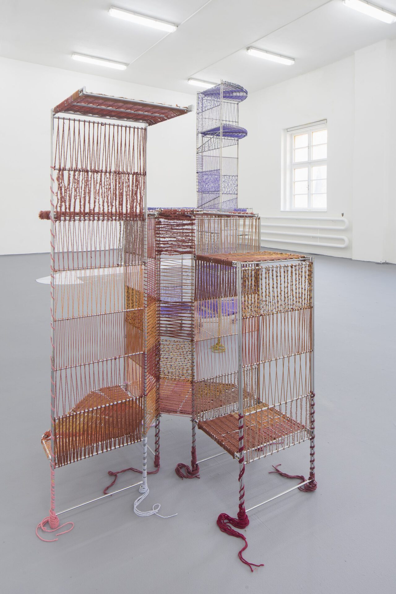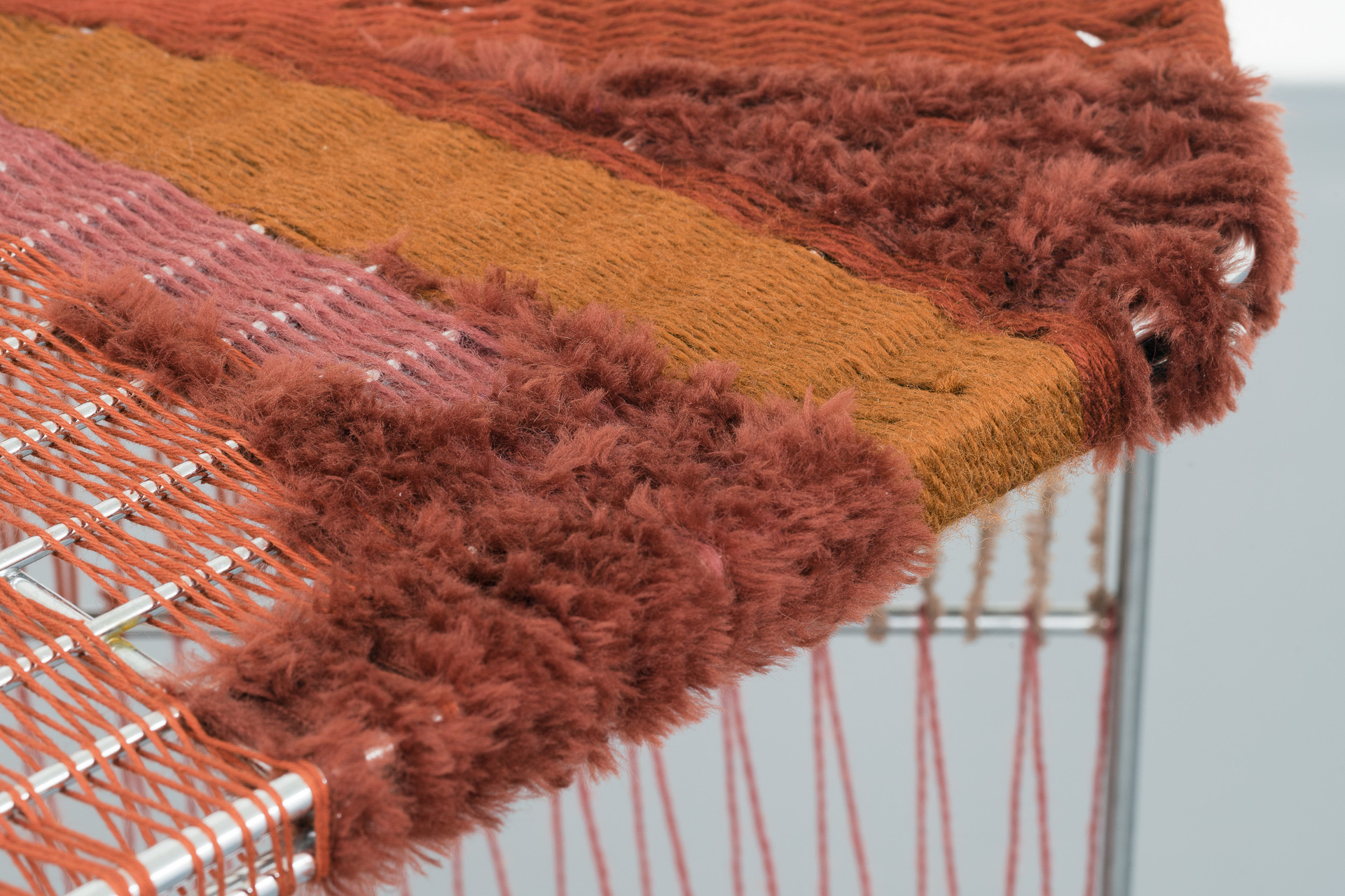 Their current exhibition Tiredness Quotes elaborates on the same topic and follows up to Ostrava’s project Potential Causes of Afternoon Tiredness which the couple set into one of the abandoned buildings in the city center, between the rusting hangers and dingy movables. For their installation in Karlin Studios the artists borrowed a tiny part of furniture from the bankrupt shop and added some new weaved objects. Zentková & Gryboś will let musicians play the motive of the song Dancing in the Dark among the objects to document the way the song gets asymmetrically deformed as a result of fatigue. The exhibition is an admitted citation of Bruce Springsteen’s song from 1984, in which he was venting out his frustration, creative block following a successful record, concerns about not being able to build on it further, and anxiety of the pressures of his record label. During the four-hour-long performance, the hired musicians are going to constantly come back to the song while abandoning it at the same time. Nonetheless, the message is not only in the melodies and tones: it dwells in the drops of sweat on the musicians’ faces, as well as in the guitarist’s sore fingers and in the broken guitar strings and in the pussyfooting of the audience.