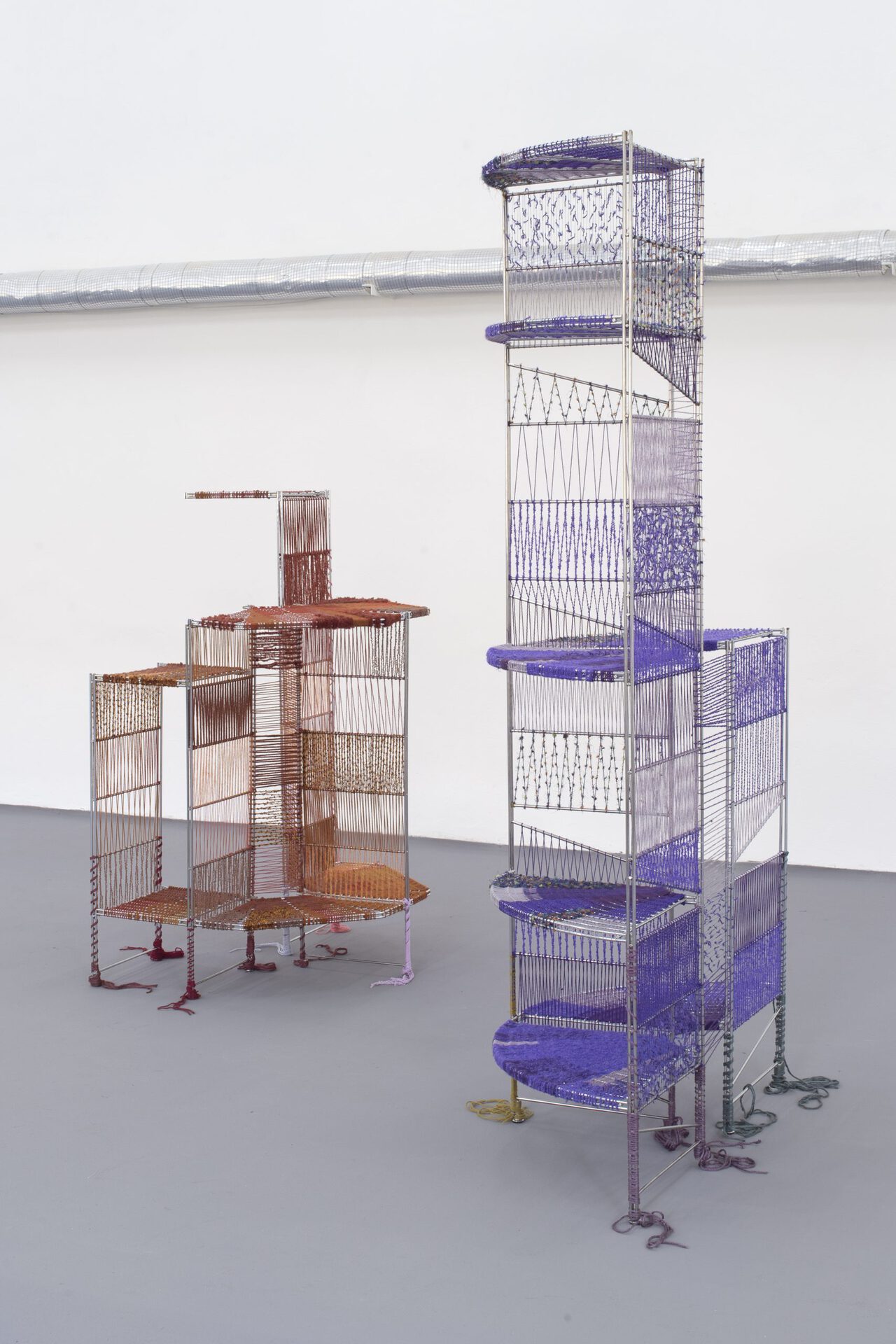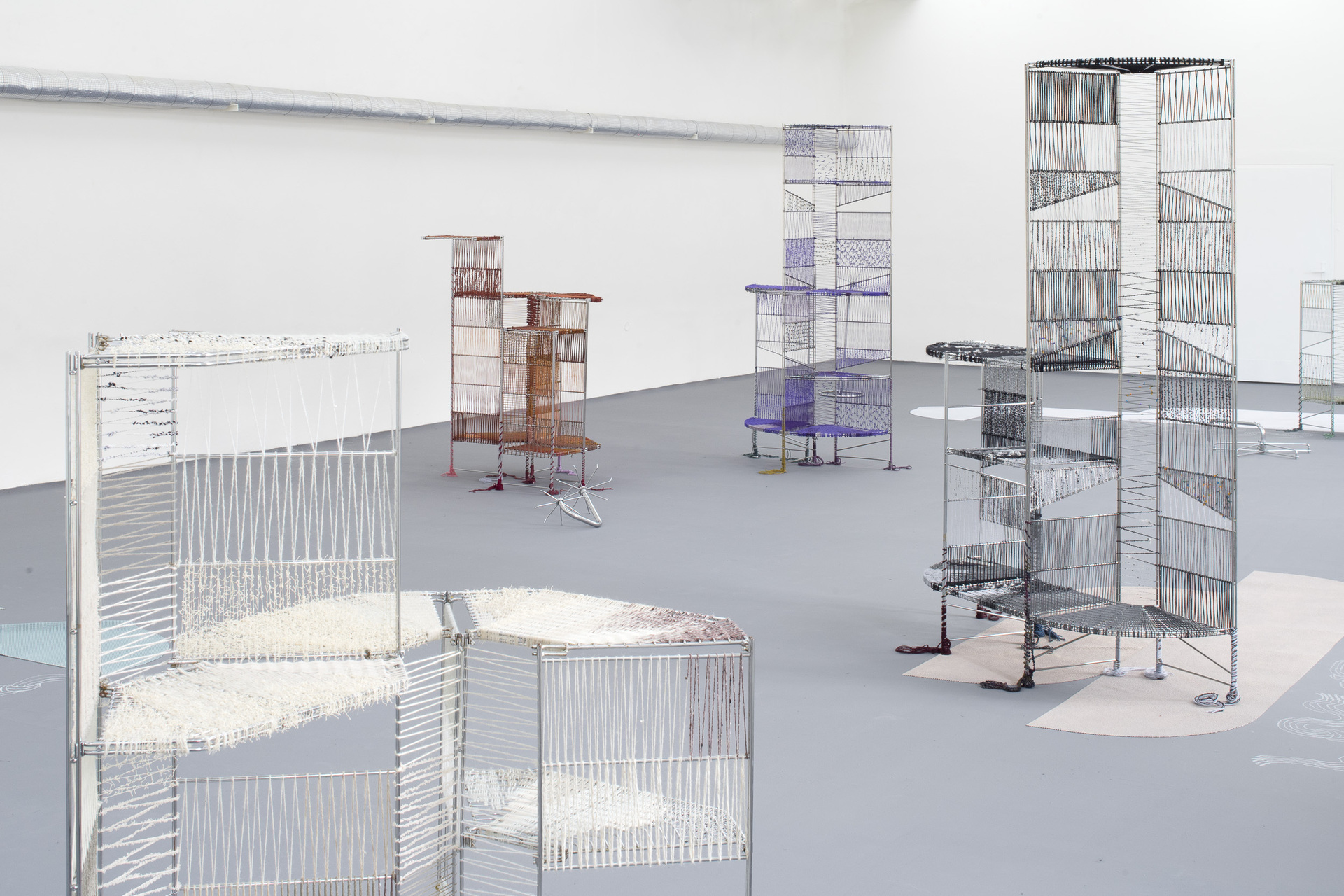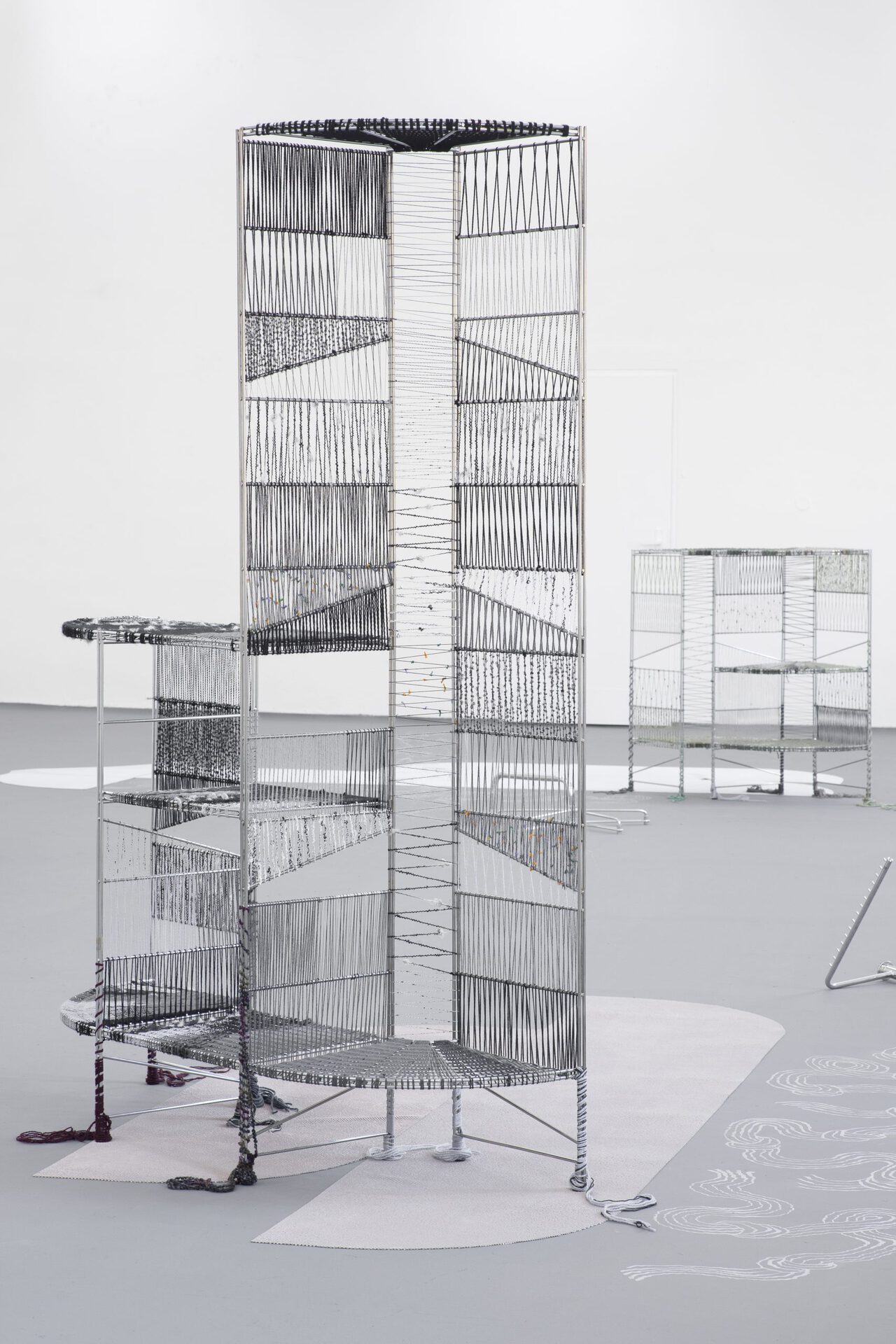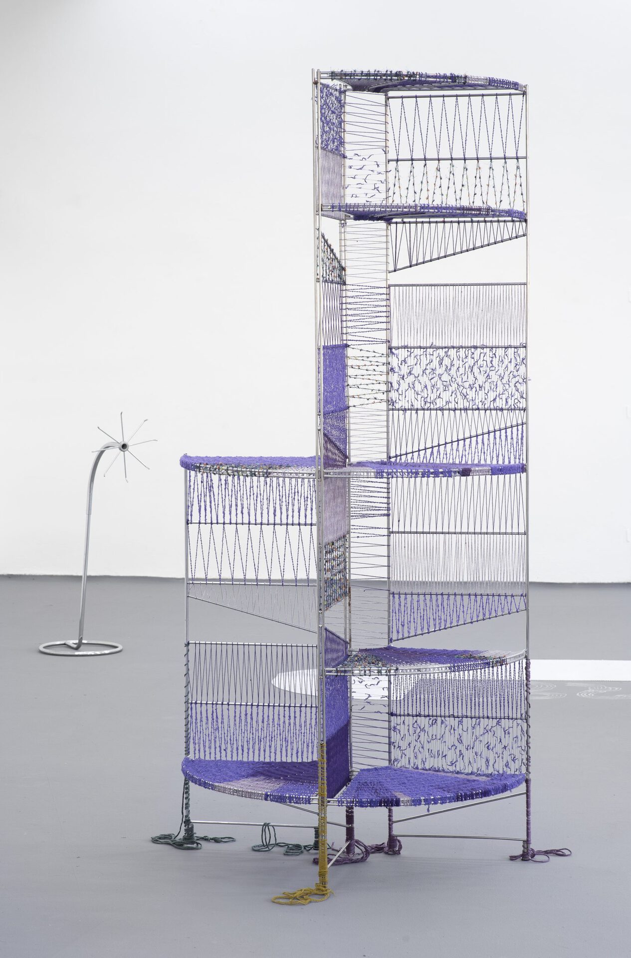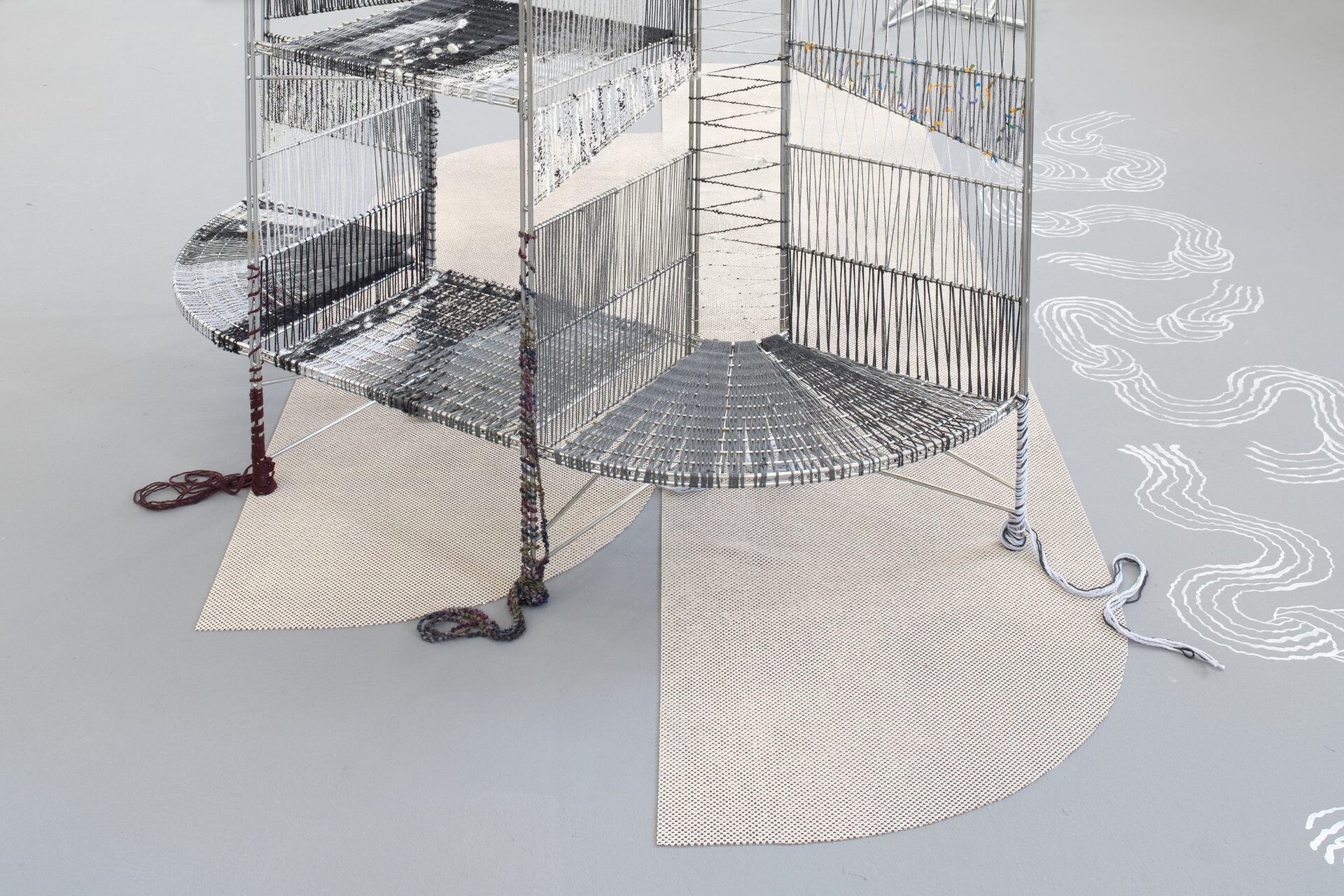 Their current exhibition Tiredness Quotes elaborates on the same topic and follows up to Ostrava’s project Potential Causes of Afternoon Tiredness which the couple set into one of the abandoned buildings in the city center, between the rusting hangers and dingy movables. For their installation in Karlin Studios the artists borrowed a tiny part of furniture from the bankrupt shop and added some new weaved objects. Zentková & Gryboś will let musicians play the motive of the song Dancing in the Dark among the objects to document the way the song gets asymmetrically deformed as a result of fatigue. The exhibition is an admitted citation of Bruce Springsteen’s song from 1984, in which he was venting out his frustration, creative block following a successful record, concerns about not being able to build on it further, and anxiety of the pressures of his record label. During the four-hour-long performance, the hired musicians are going to constantly come back to the song while abandoning it at the same time. Nonetheless, the message is not only in the melodies and tones: it dwells in the drops of sweat on the musicians’ faces, as well as in the guitarist’s sore fingers and in the broken guitar strings and in the pussyfooting of the audience.