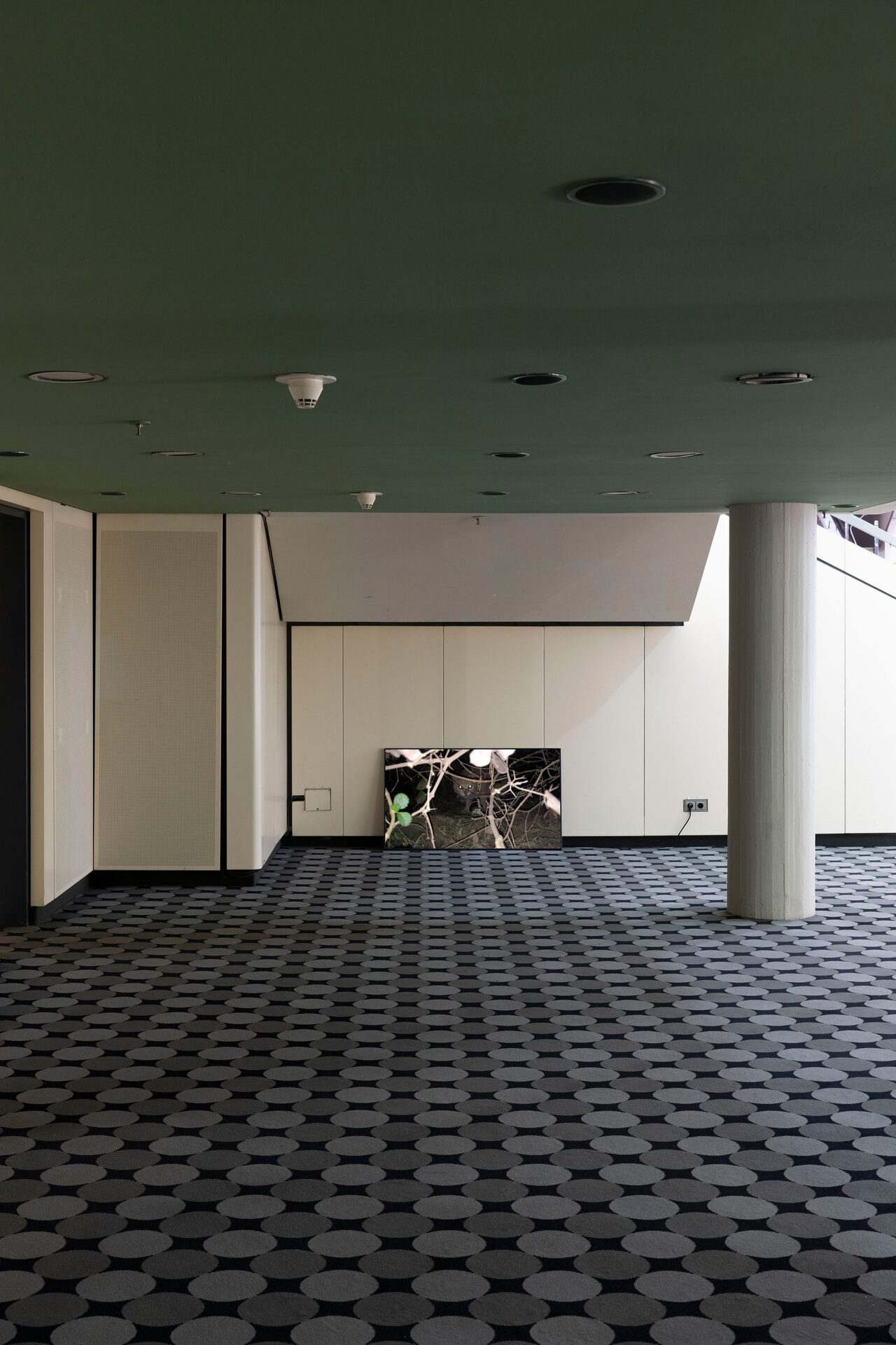 Das Internationale Congress Centrum (ICC) landete in den Siebziger Jahren im Berliner Westend wie ein riesiges Raumschiff, das seither den freien Stadtraum tilgt. In seiner stillgelegten Form von heute scheint es für jegliches Leben nur noch schwer erreichbar. Für kurze Zeit als spektakuläre Ausstellungsfläche wiederbelebt (The Sun Machine Is Coming Down), konnte auch Brinkers Videoarbeit darin vorgefunden werden. Die Katze hauste im gigantischen Ufo, ein wenig versteckt, fast beiläufig vorzufinden, dennoch nicht zu übersehen. Was wäre, wenn sie die High-Tech Architektur tatsächlich als ihr Revier einnehmen würde? Bewohnen nicht-menschliche Wesen diesen Ort bereits?