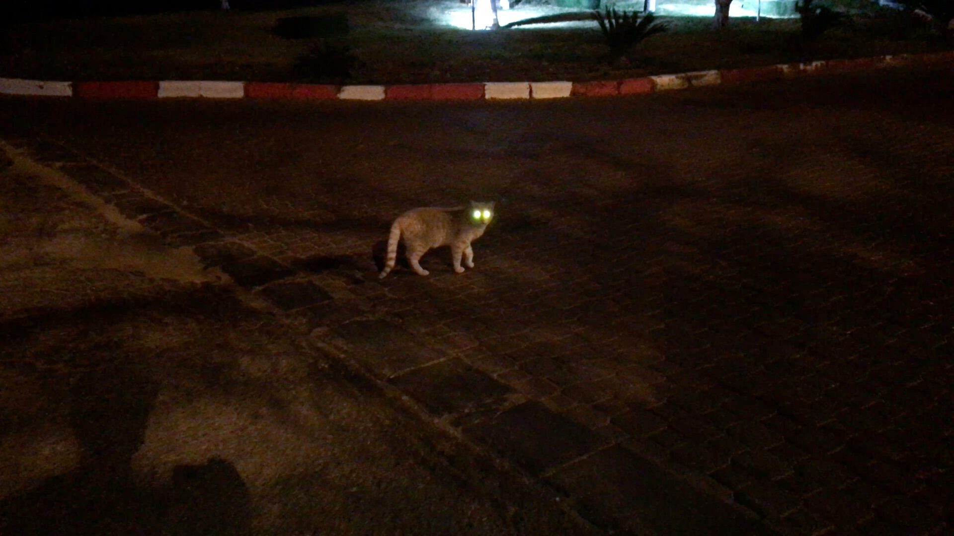 Die Videoarbeit Tuesday, 31.01.2017 von Jonas Brinker ist Zeugnis einer nächtlichen Begegnung von Mensch und Tier. Eine Katze bewegt sich verführerisch über einen verlassenen Parkplatz und beansprucht die menschengemachte Asphaltlandschaft als ihr Territorium. In den Bann gezogen folgt die Kamera dem nachtaktiven Geschöpf haltlos, geleitet von den leuchtenden Augen, die den Weg durch die Dunkelheit weisen. Das Spiel aus Bewegungsabläufen und Blickaustausch erweckt ein Gefühl von momenthafter Intimität, die zwischen bedingungslosem Vertrauen und Furcht changiert. Eine gemeinsame Sprache zur reibungslosen Verständigung muss scheinbar noch gefunden werden. Doch in der Endlosschleife führt das Geschehen immer wieder zurück zum Anfang und unterbindet somit jeglichen Ausweg.