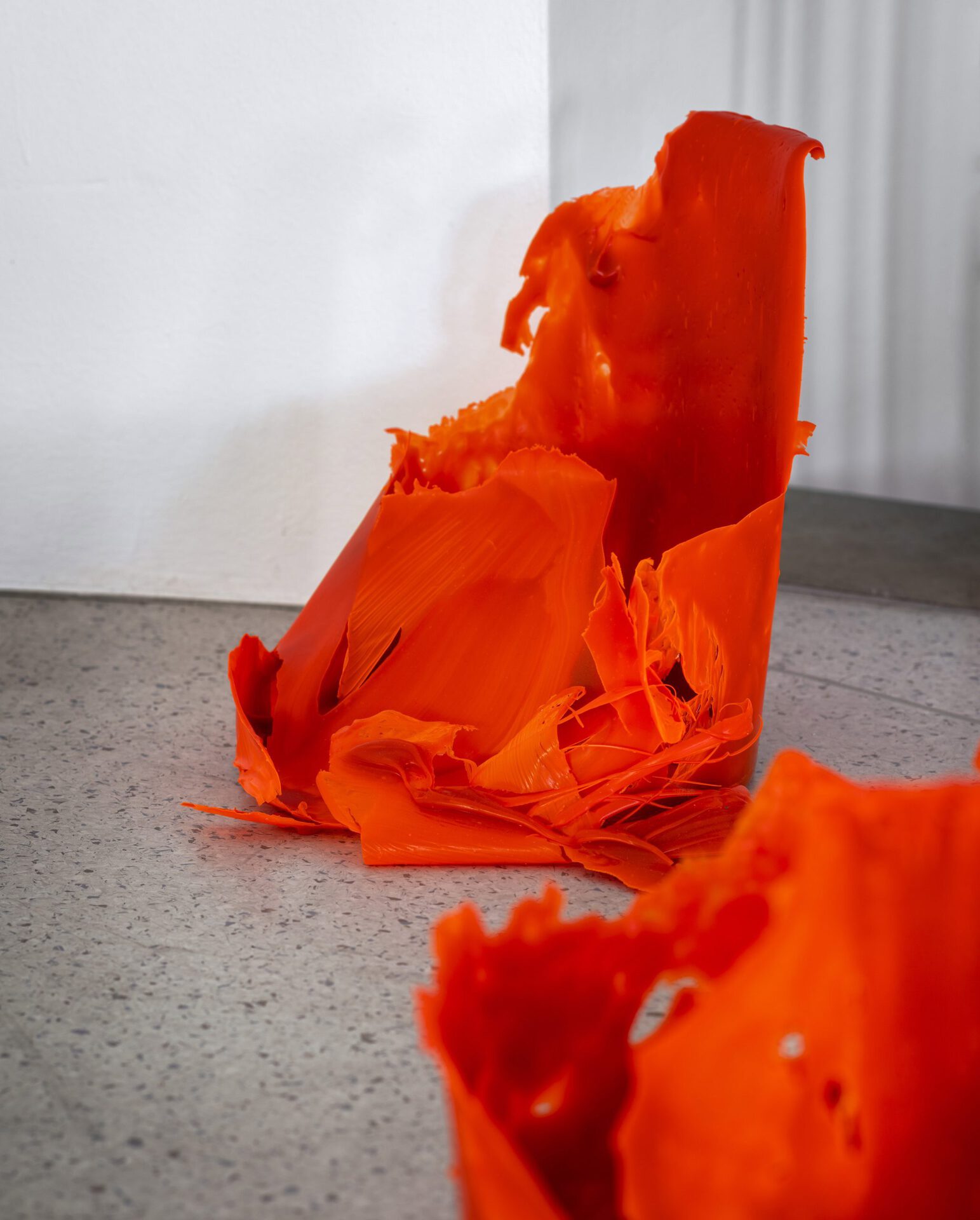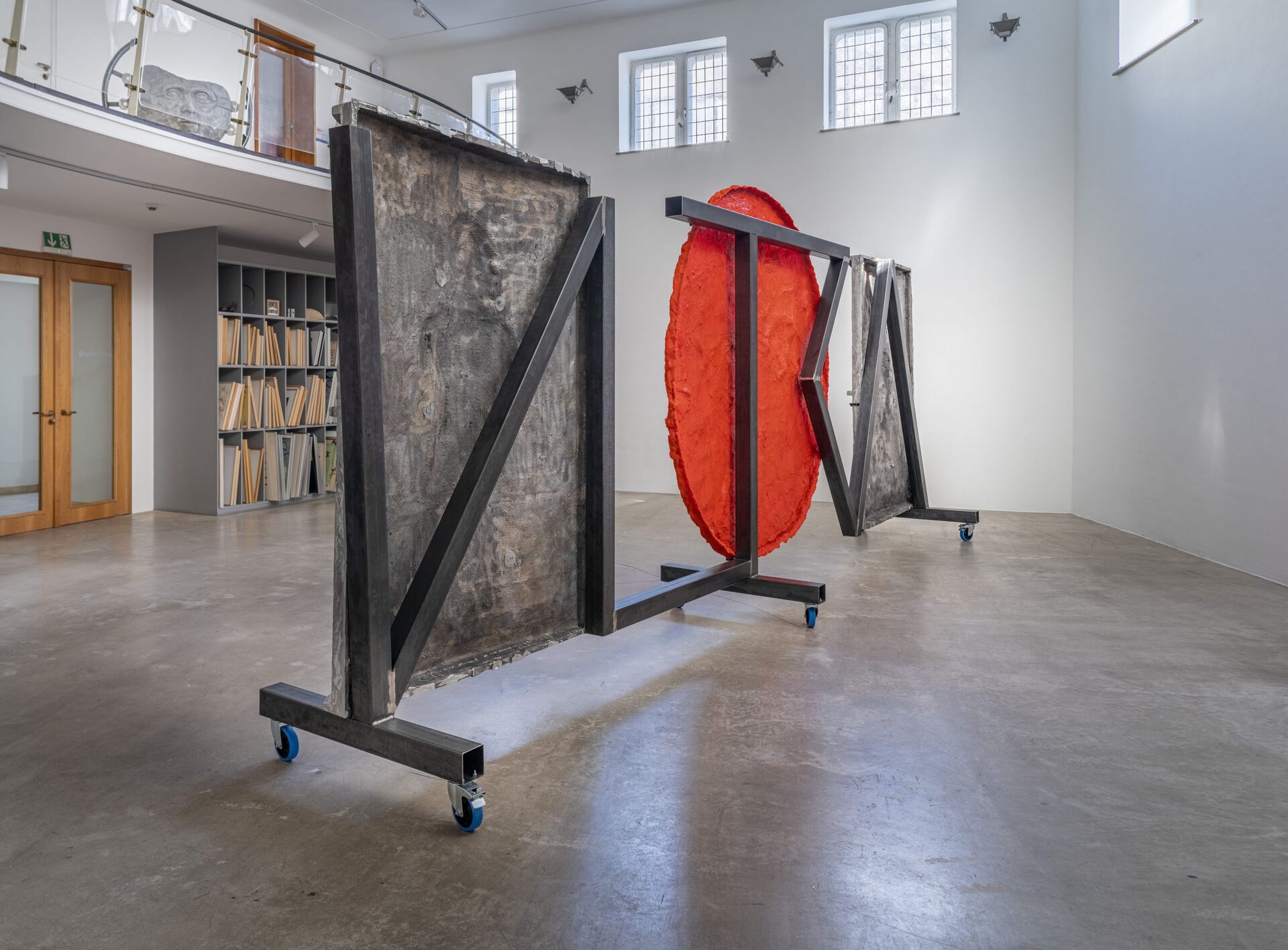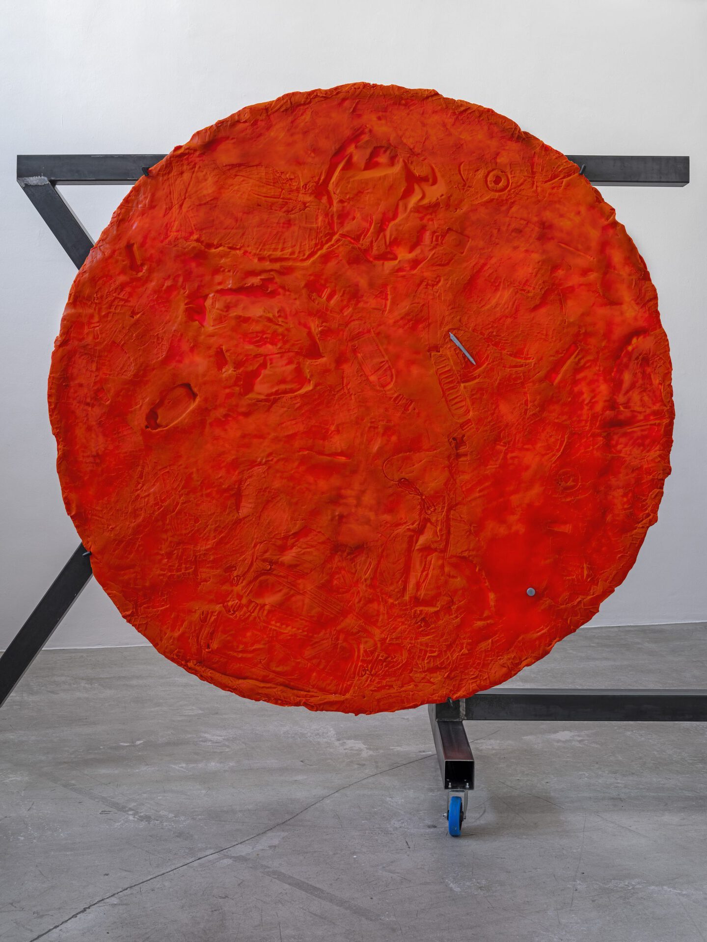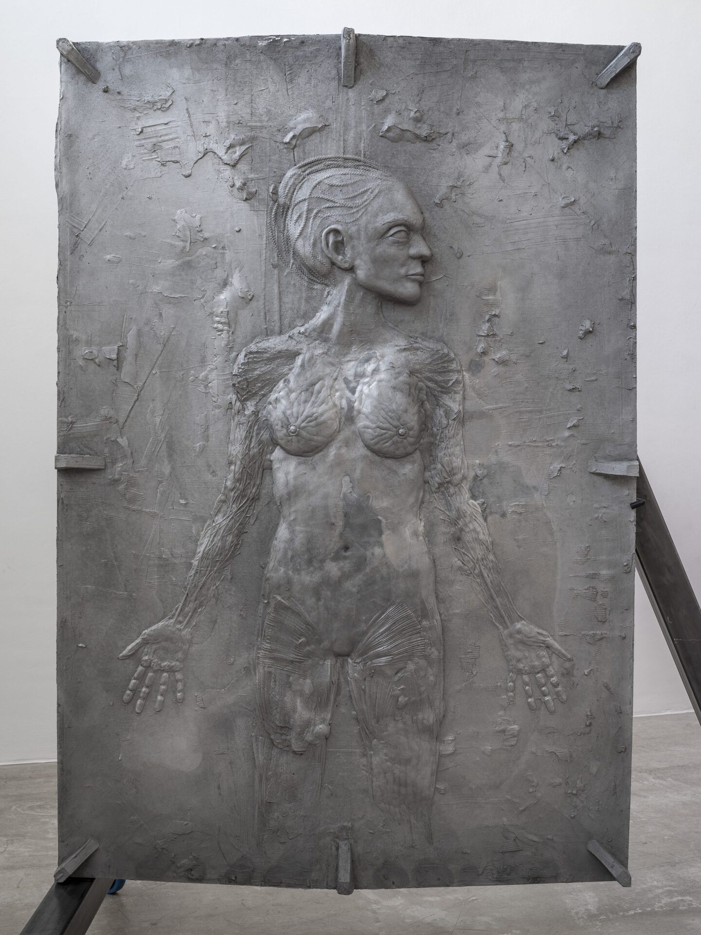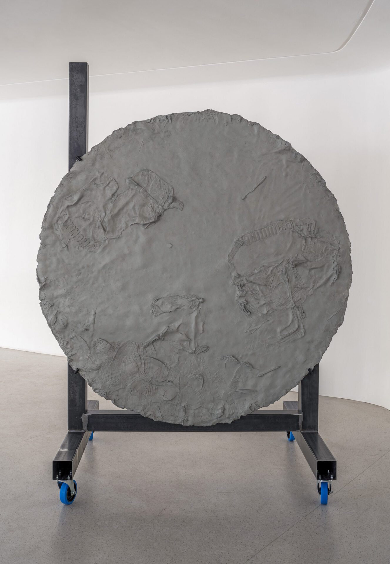 A co-production of Alfons Knogl and Lukas Schmenger, “ULTRA” showcases aluminium and epoxy- resin reliefs presented in a unique display in the centre of the exhibition space. Their circular and rectangular oversized plaques address the classical form of expression between sculpture and architecture with reference to topical questions about figure and object. In contrast to conventional positioning with only one visible show-side and obscured rear side, this installation type reveals insights into both front- and rear views. It also allows a closer examination of the shaping and volume that materialized according to the creation of the front side. They comprise the reductive, abstract counterpart to figurative and objective artworks.