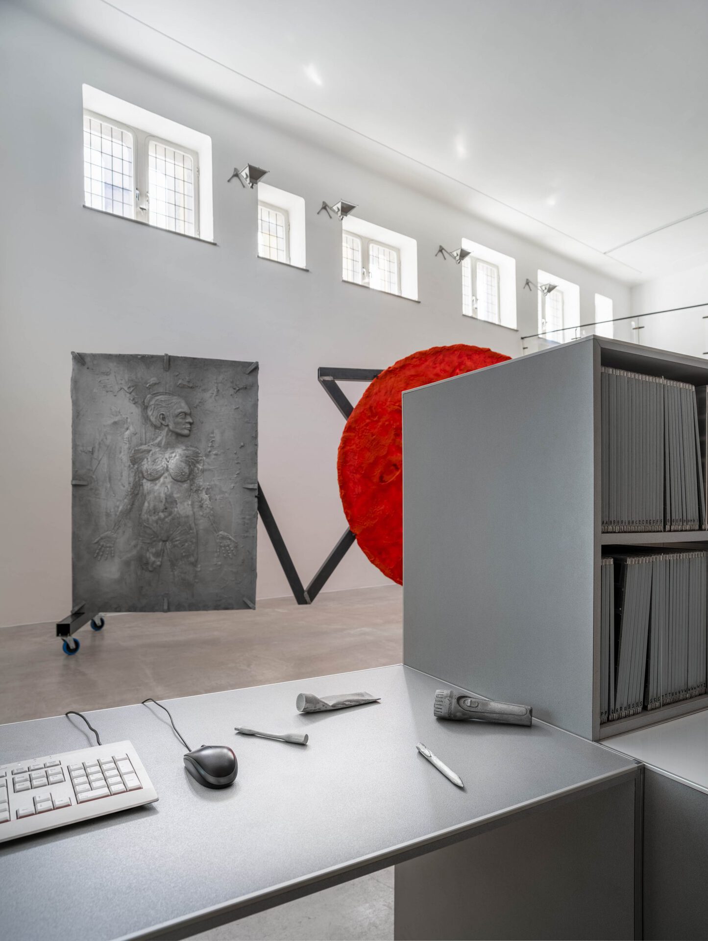 Lukas Schmenger’s works focus on the representation of the human figure. The special theme of the work of Alfons Knogl is the divergent view of everyday objects and their integration into global chains of production and trade. A multilayered dialogue evolves through the interplay in the works of charged figuration and sober arrangement, of classical form and modern material. Both artists’ thematic association is the clash of individuality and global uniformness in today’s living milieu, including the world of things. This topic is transposed into a new form for the relief as an expressive medium that is especially attuned to our time.