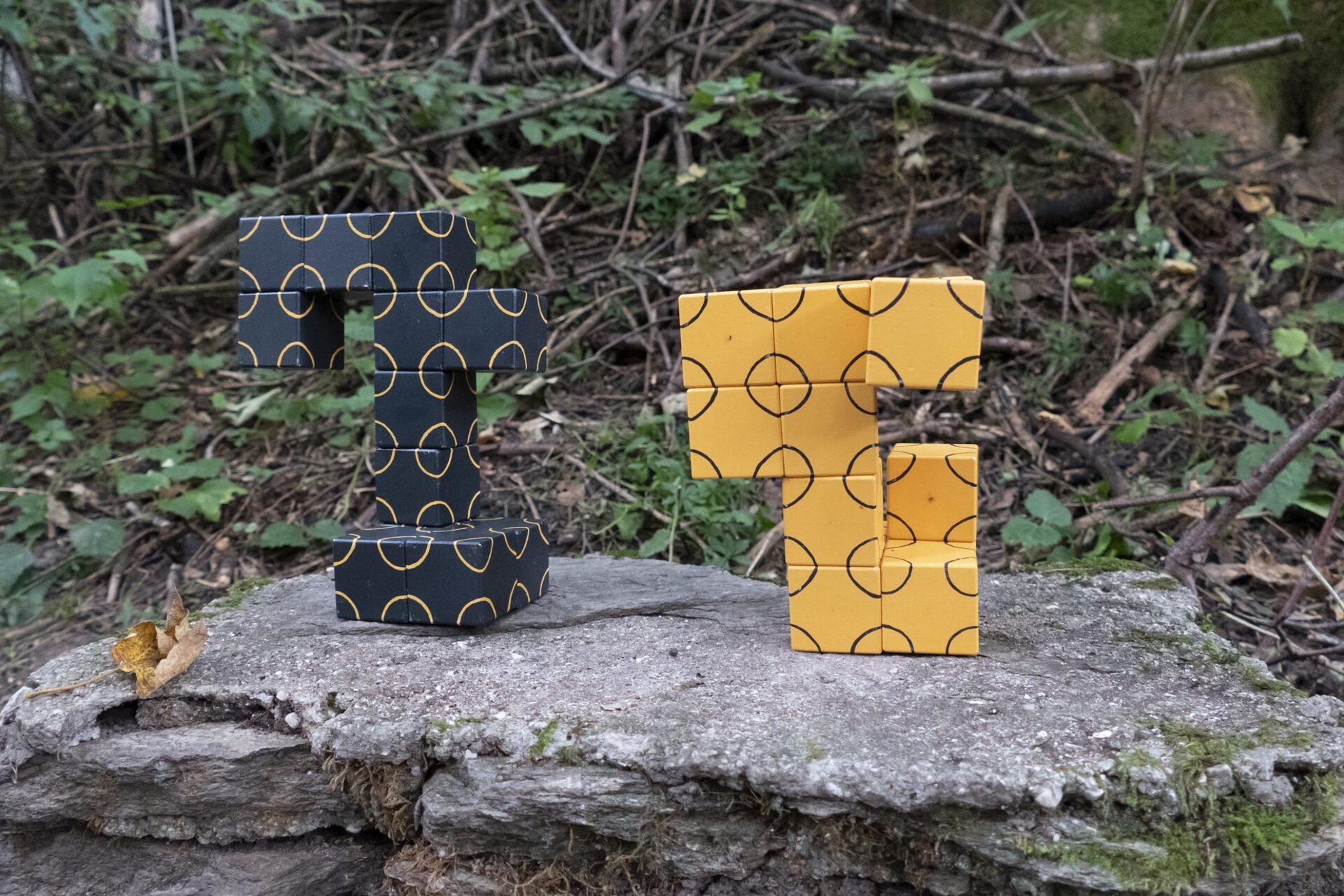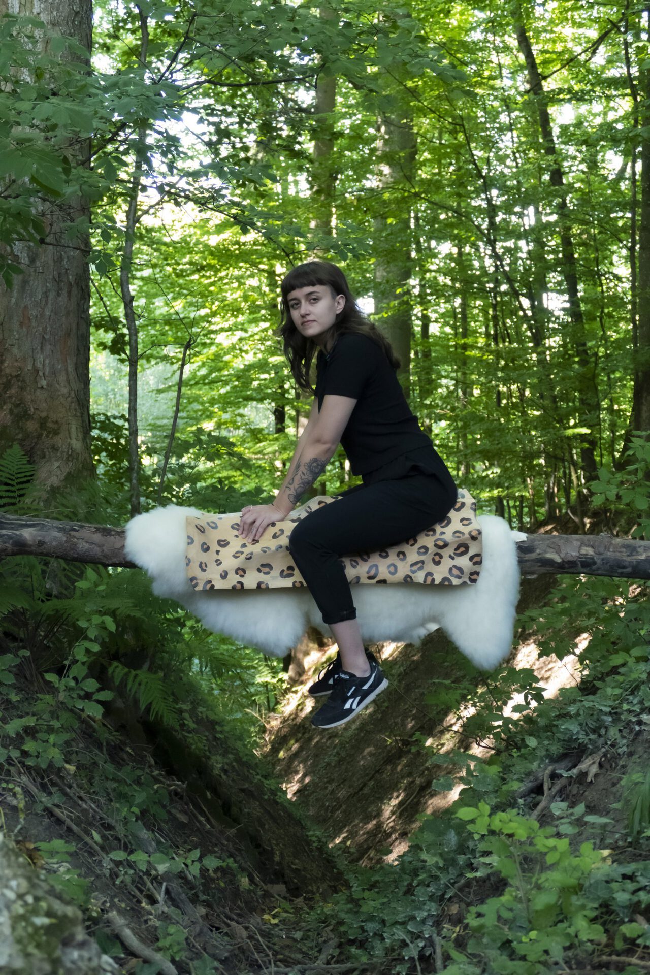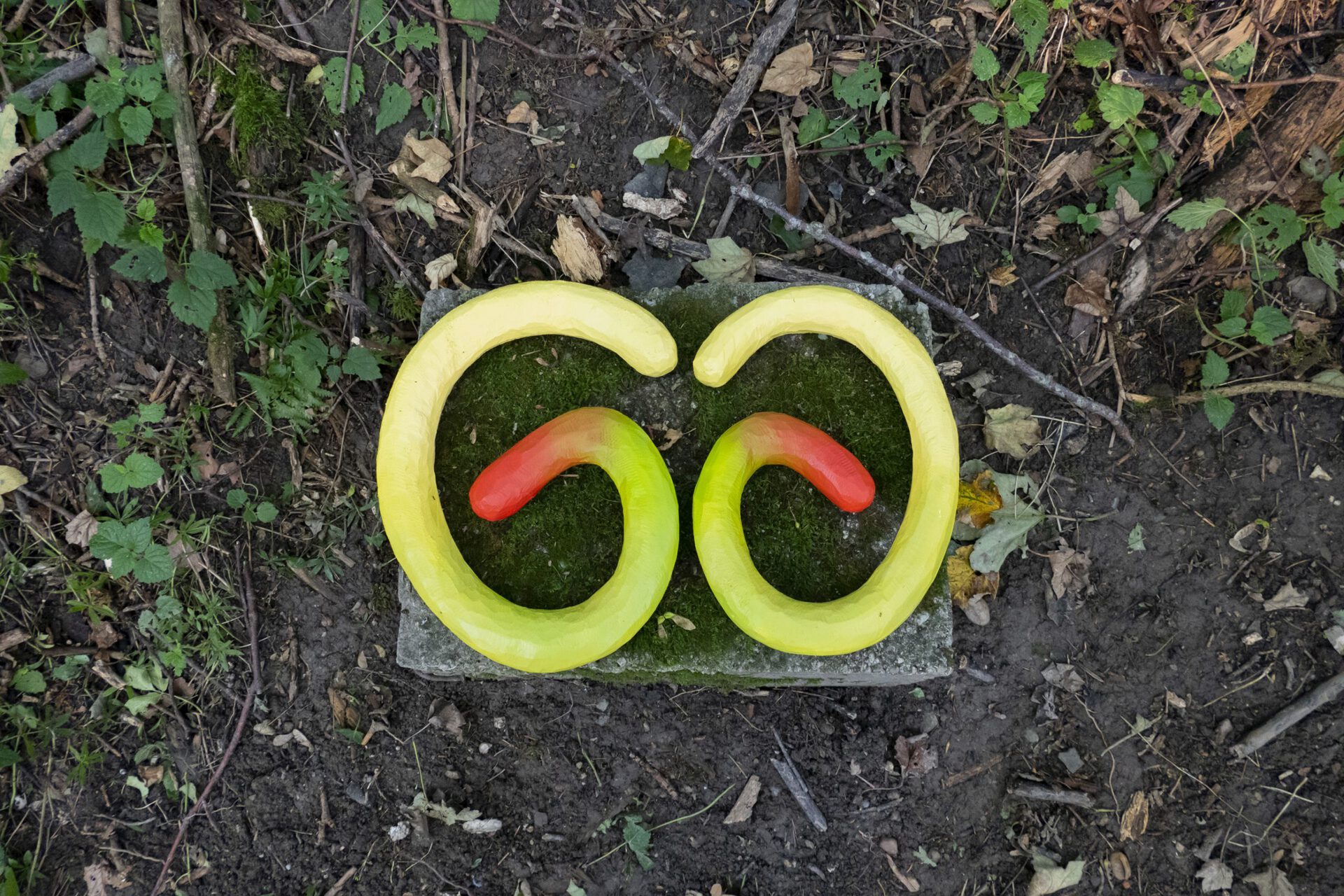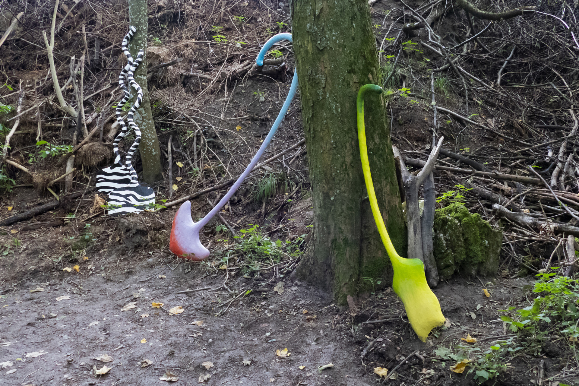 Four different Paddles relate to farming tools and their implementation in folkloric Austrian dance. A Kissing-Flute, which is to be held and played, is placed on a stone. Two Rams are to be smashed against the trunks of trees to give a rhythmic experience. The 24 magnetic cubes of Day and night are to decide the everlasting rivalry between day and night, in the form of a game.