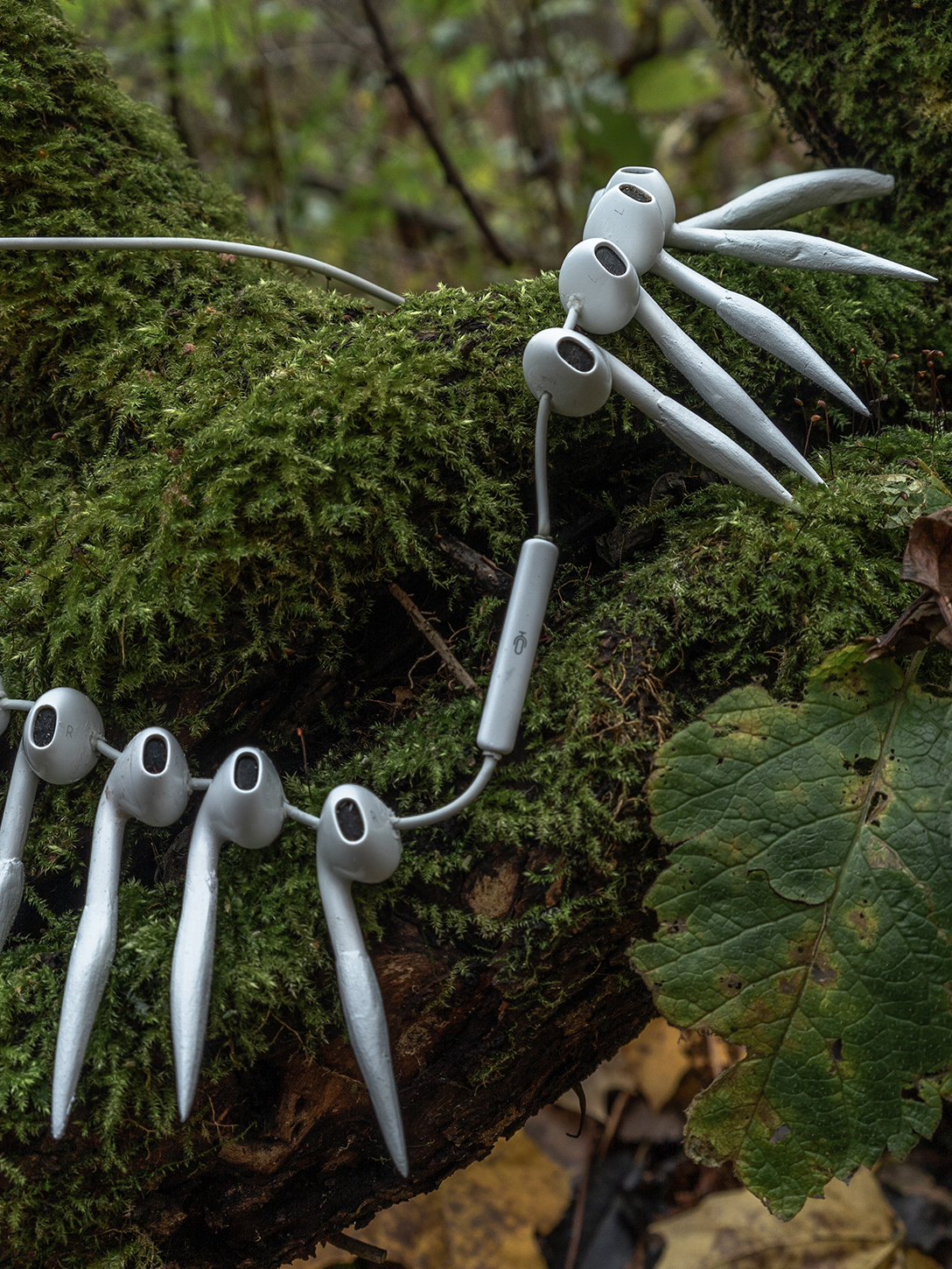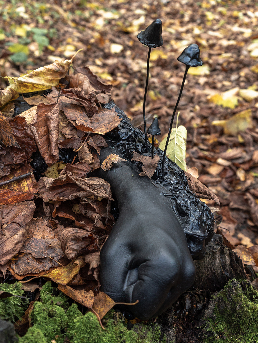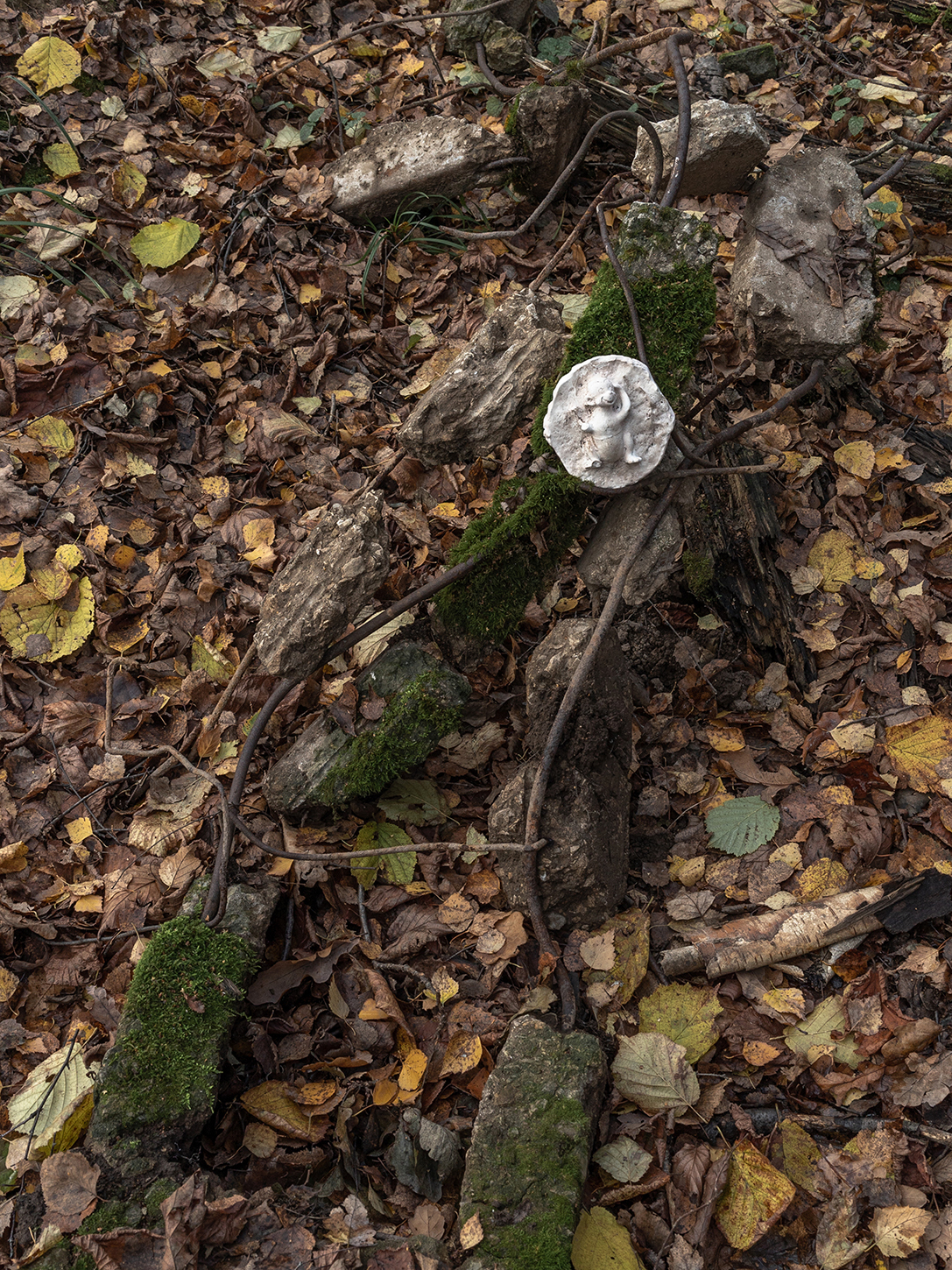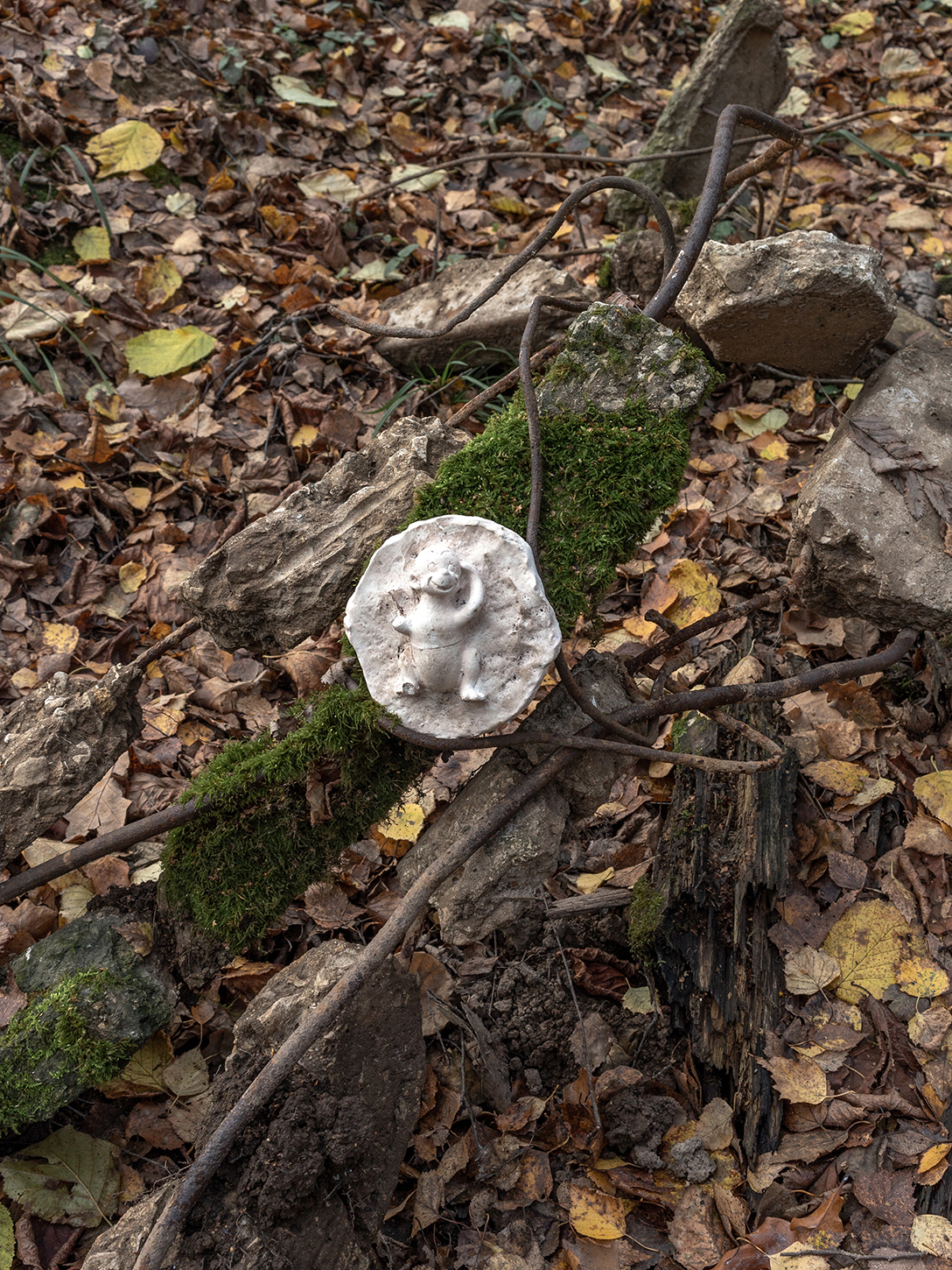 At present, the reserve is a developed territory that builds a new type of object-historical relations. Asphalt paths and benches, an equipped sports ground and a cafe are adjacent to the ancient burial mounds. I inscribed artifacts that combine pagan visual forms with the attributes of the profane, characteristic of the culture of our days into these relations. The objects were scattered across different areas of the reserve and looked like some kind of a random archaeological find. Through artifacts, I tried to create an image of this type of person who could be characterized as a representative of the "new archaic".