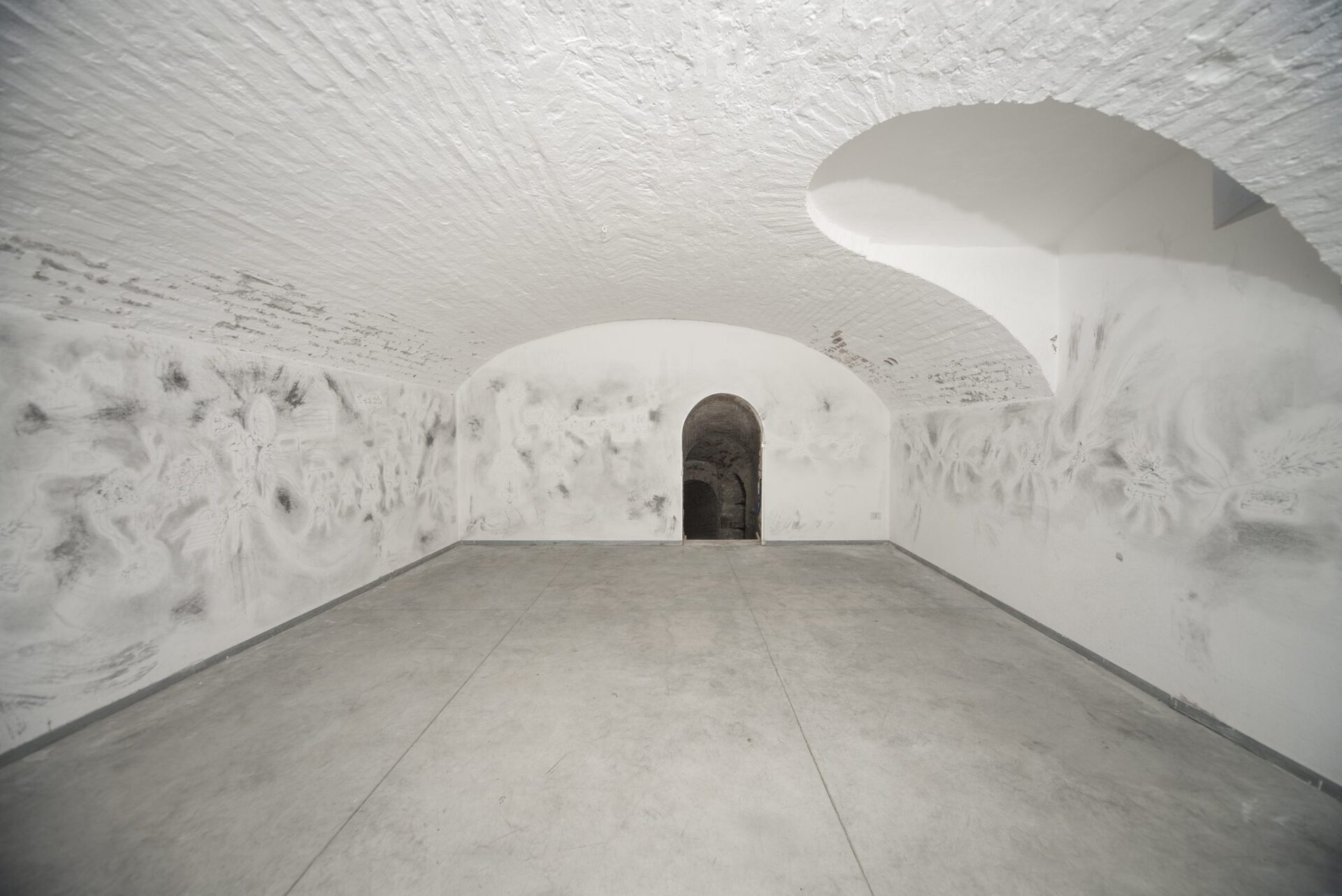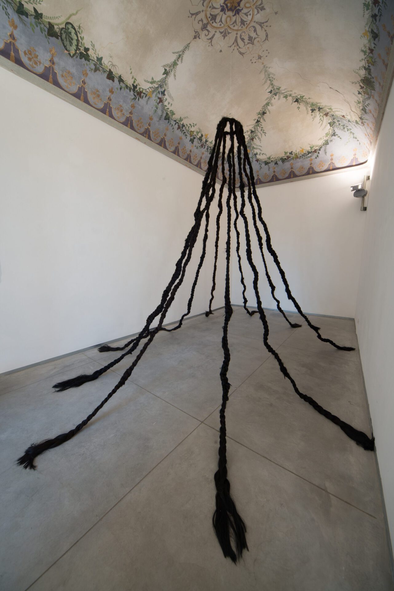 In this exhibition, the sirena performs a unique slippage, weaving through each artists’ practice to explore sound as a mode of transmission, saltwater as a texture of connectivity, and the underworlds of the grotto and swamp as ecosystems of interaction and change. The artworks presented engage with embodiment in physical and collective forms; the flesh of our throats, the voices that reverberate from our mouths, the stories that resonate between our ears, and the memories that dwell in our guts. Inhabiting the ground floor and basement of the Palazzo Re Rebaudengo–nestled in the hills of Guarene–the exhibition provides a periphery for vocal, material and collective experimentation. Site-specific commissions by ALMARE, Benni Bosetto and Binta Diaw transgress normative boundaries of time and space, engaging with alternative narratives and shared rituals. Raffaela Naldi Rossano’s works on paper also materialize ritual, forming a nonlinear system of symbology and correspondence. The sculptural works of Bea Bonafini and Nuvola Ravera integrate natural and local materials into intimate vessels that echo the elements of our own watery bodies. Marco Giordano and Real Madrid’s sculptural installations evoke the erotics of subterranean space, queering organic and everyday objects as containers for liquid and vocal emission. Elisa Strinna’s video work navigates the nuanced channels of the Mediterranean Sea, while the Sicilian collective Femminote’s purchasing project Isola delle Femmine enacts the emancipatory potential of a borderless territory.