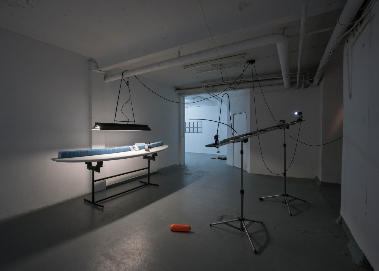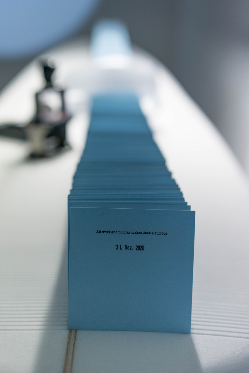 WAVESHOP is my attempt as an artist to let collide two different worlds: wave surfing and science. As we all are confronted with invisible waves of virus infections, I decided to research on visible water waves using the idea explained above.Text