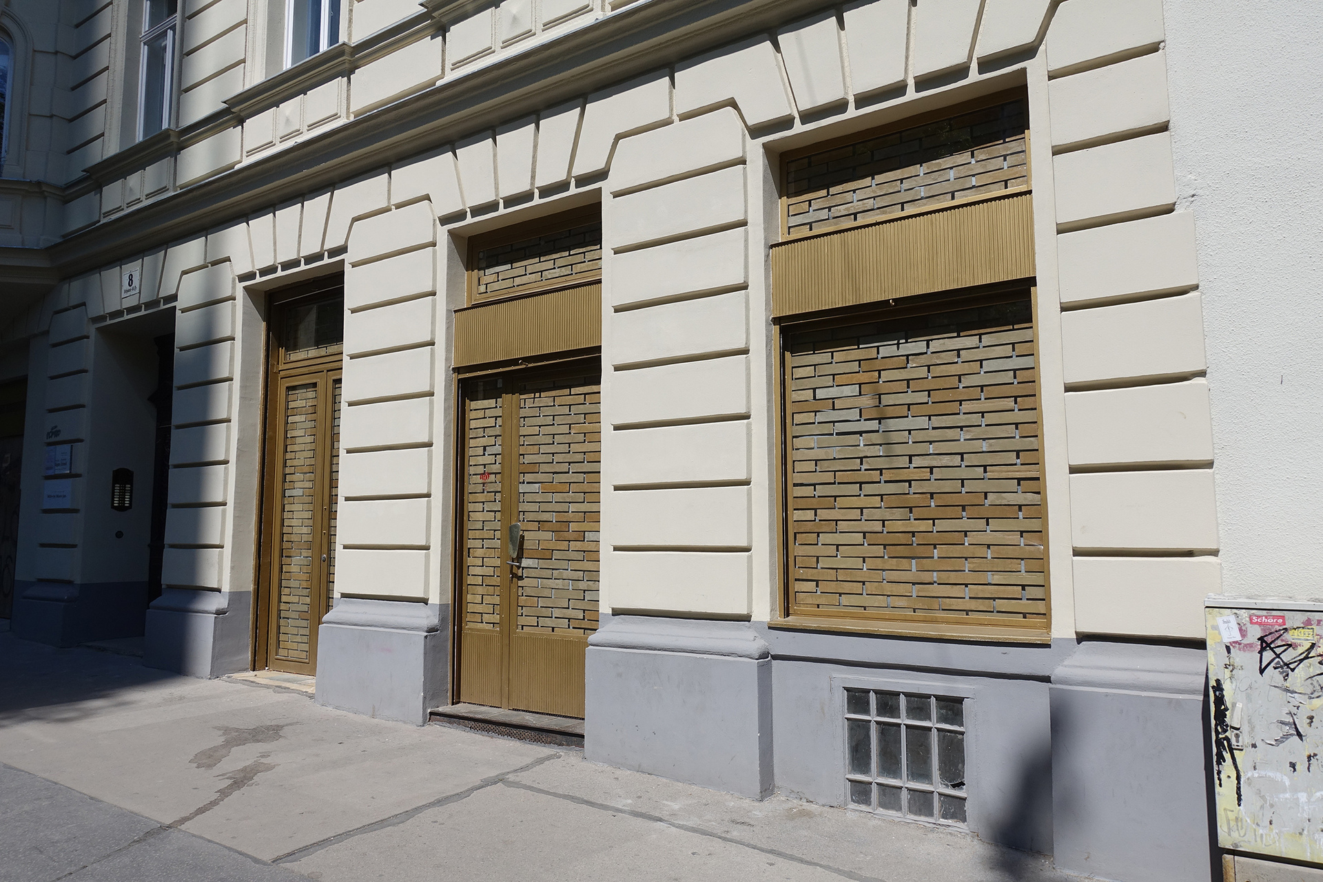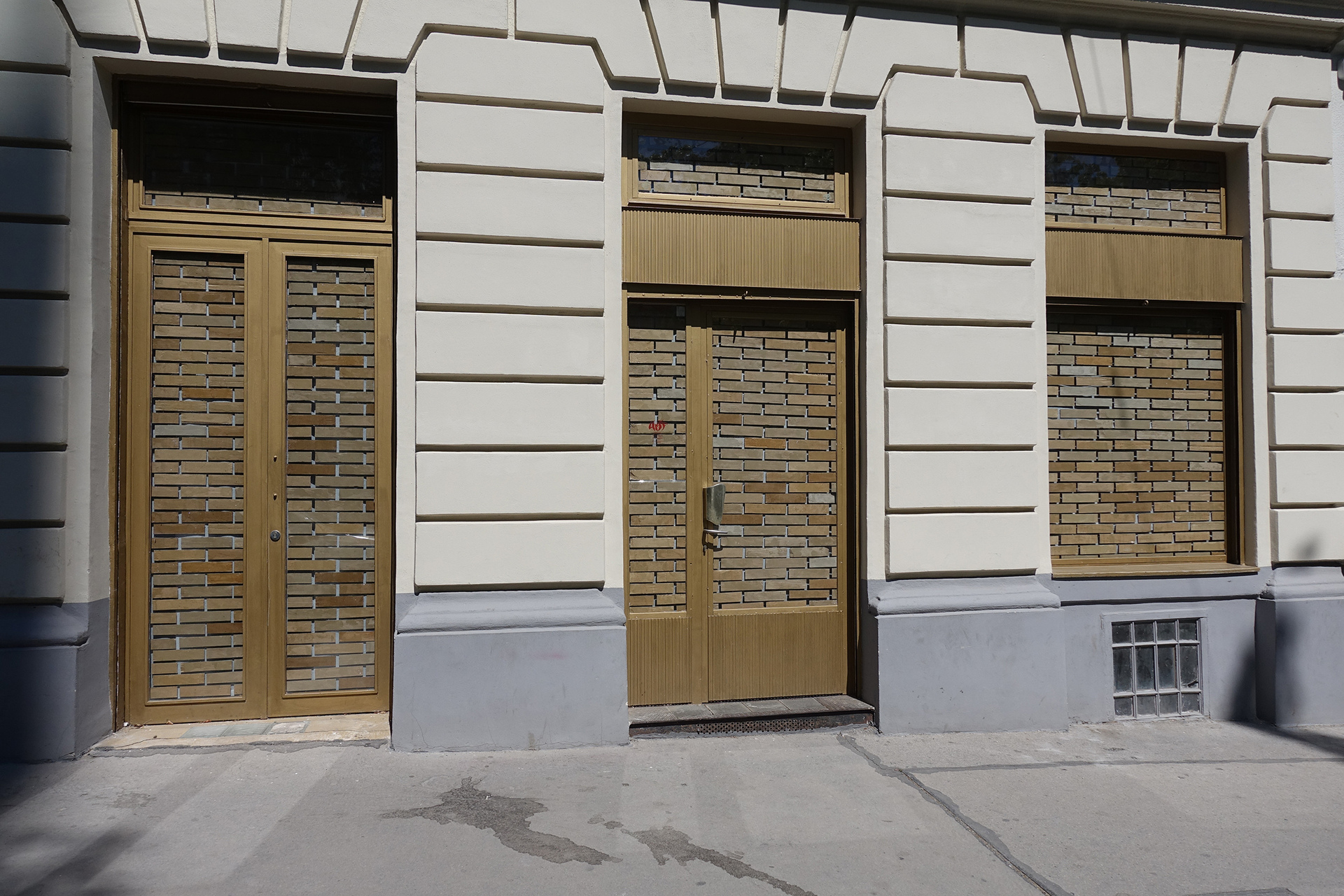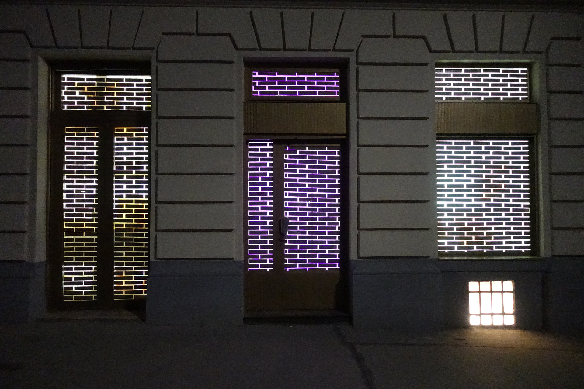 raúl i. lima made a cardboard brickwork on our windows, a resolute one — a display wall,