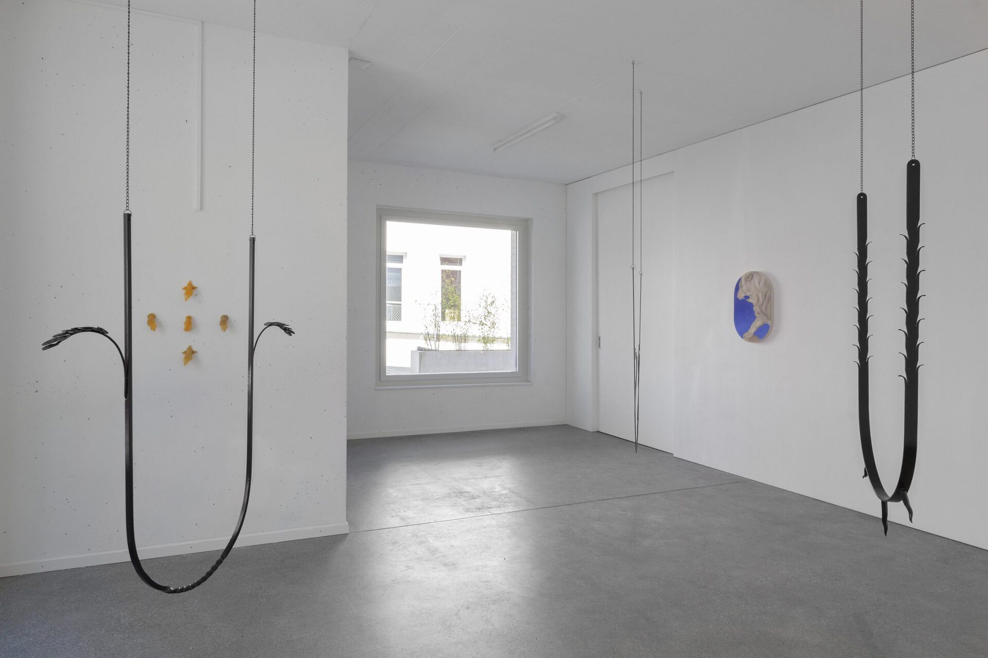 La mesure des possibles is the staging of a society that would not be solely based on principles of extraction, acceleration and accumulation. In the space, wrought iron signs are the traces of a lost civilization of which the signage would be the only vestige. Chimerical beings inhabiting the place seem to be the emblems of this imagined society. –