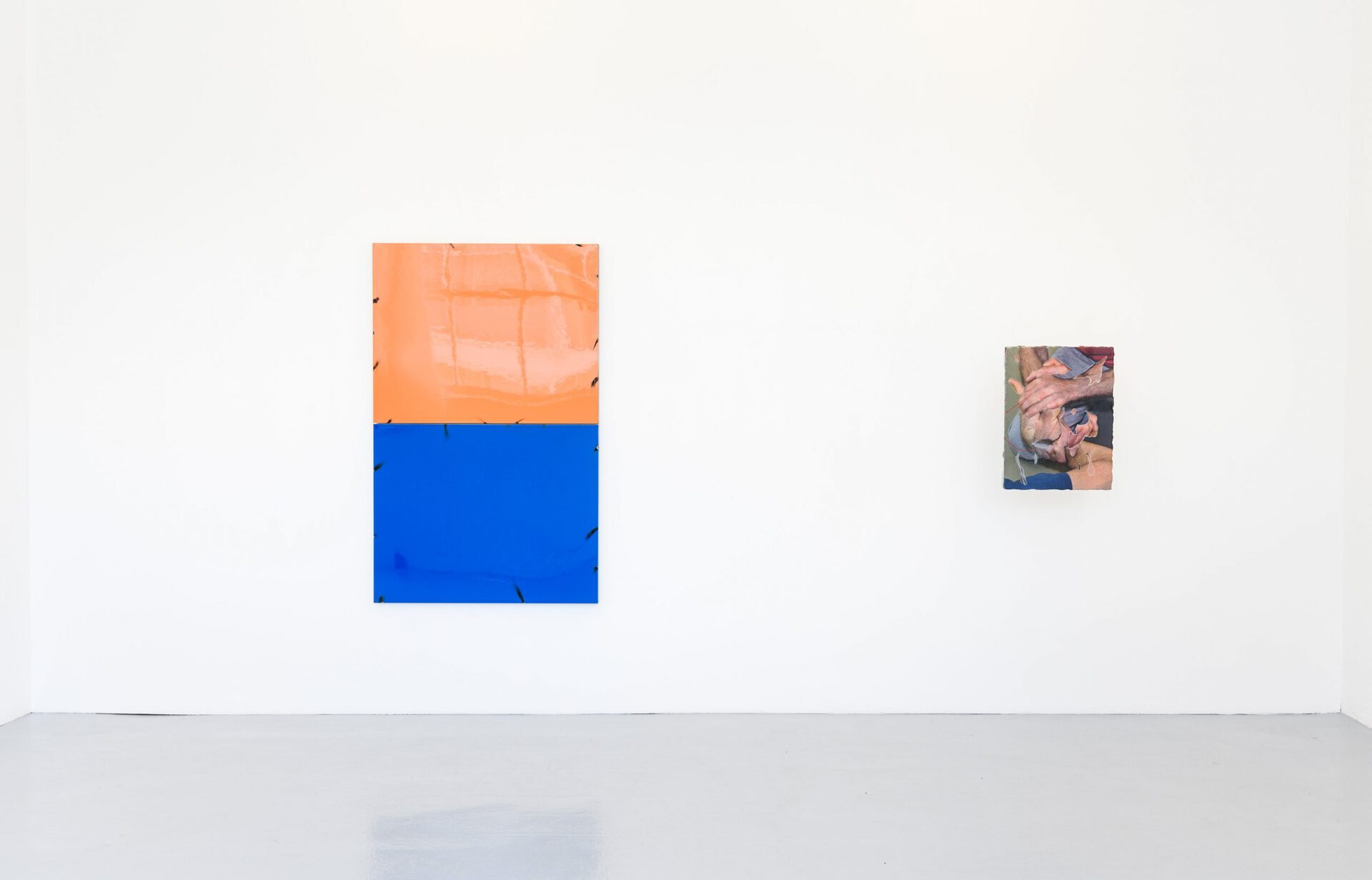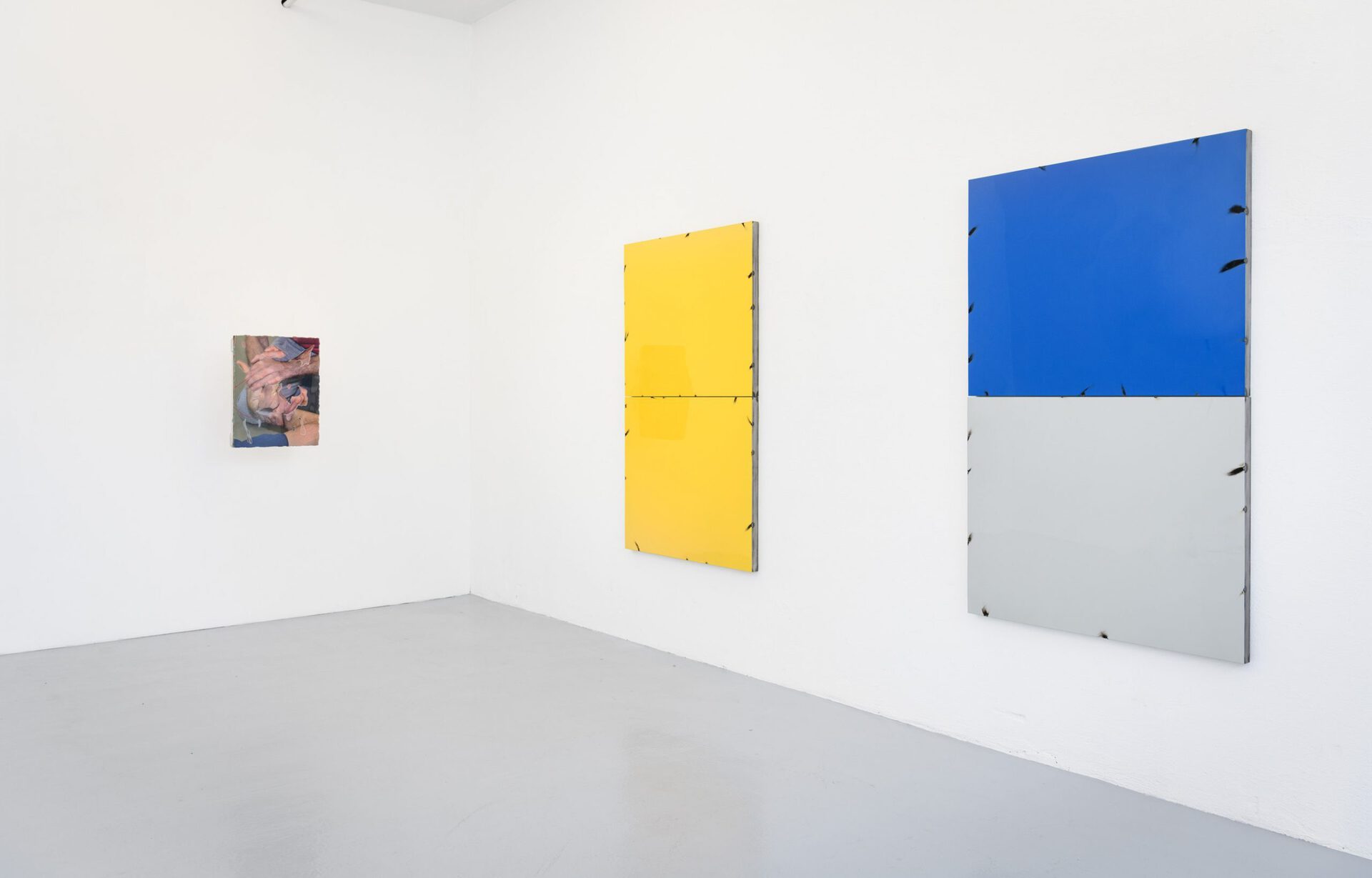Thilo Jenssen’s works incorporate sign structures, pop culture, and physical states of emergency. Existing material is subject to a degree of preparation to the point where a fragile perfection is attained requiring the necessity for protective and supporting brackets. The studied sculptor experiments with thermo-active and other techniques plus a variety of media, yet employs a painterly approach that may result in what could be perceived as an installation. The artist approaches abstract painting with a sculptural flair: countless times he grindes over the applied surfaces, uncovering induvidual particles or entire layers again - working carefully and structurally, but also allowing himself to be guided by unpredictable patterns that arise at random in the process. Jenssen is also interested in social realities and routines that are inscribed and readable in bodies. The notable series "Smooth Operator" from 2019, shows excerpts from sequences of first aid instructions. How should bodies be positioned or moved? Measures or tutorials exemplify choreographies, script procedures, and thus always indirectly depict hierarchies, strategies of support or subjugation.The pandemic has created a new visibility of the topic in recent months, while enabeling a possibilty to experience it. New forms of interaction, new gestures and movements can be observed. Here, an intervention, a being controlled, becomes very clear. Power structures are also inscribed in help and assistance.