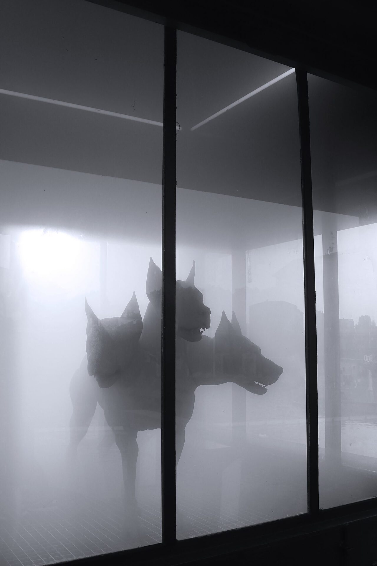 It is the eventuality of an encounter with the mythical Cerberus infernalis triceps, a three-headed dog guarding the "invisible" realm.