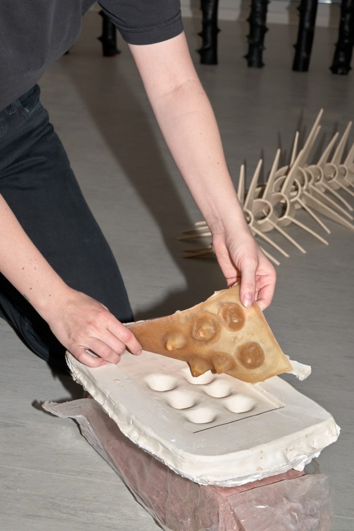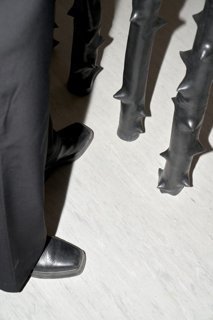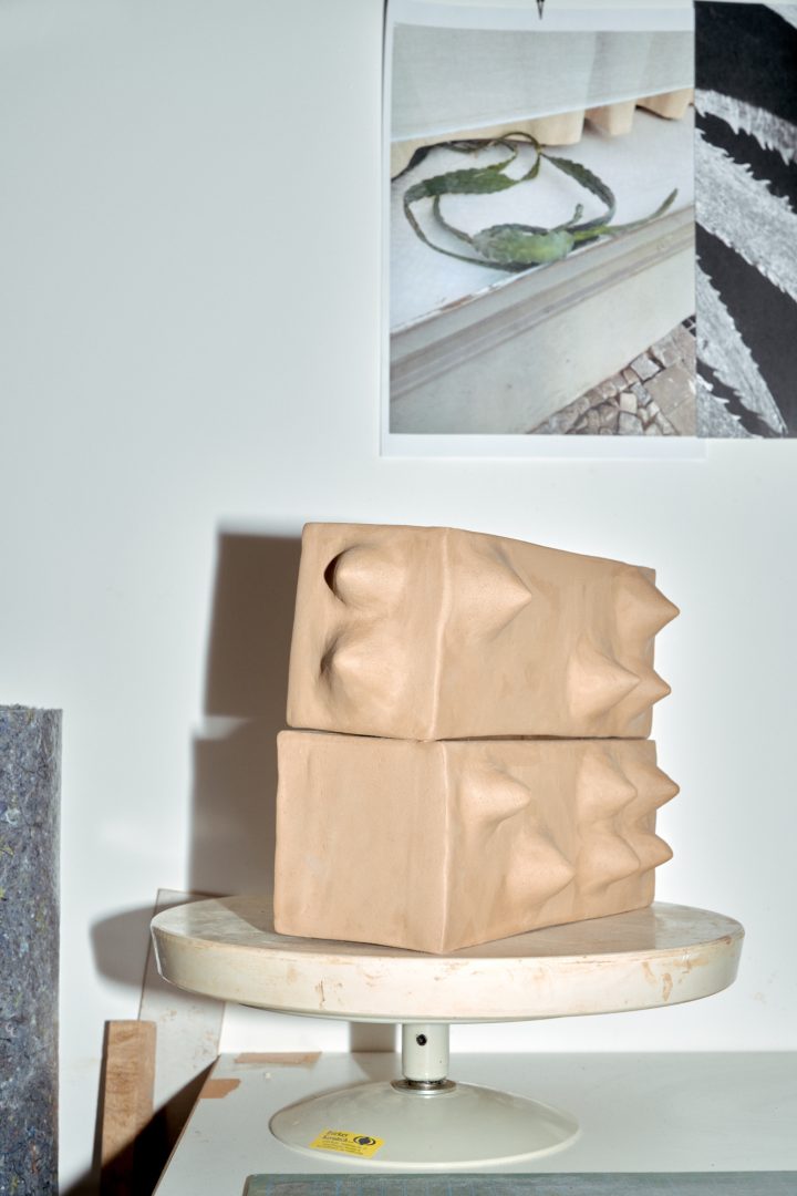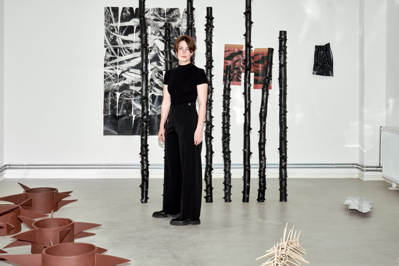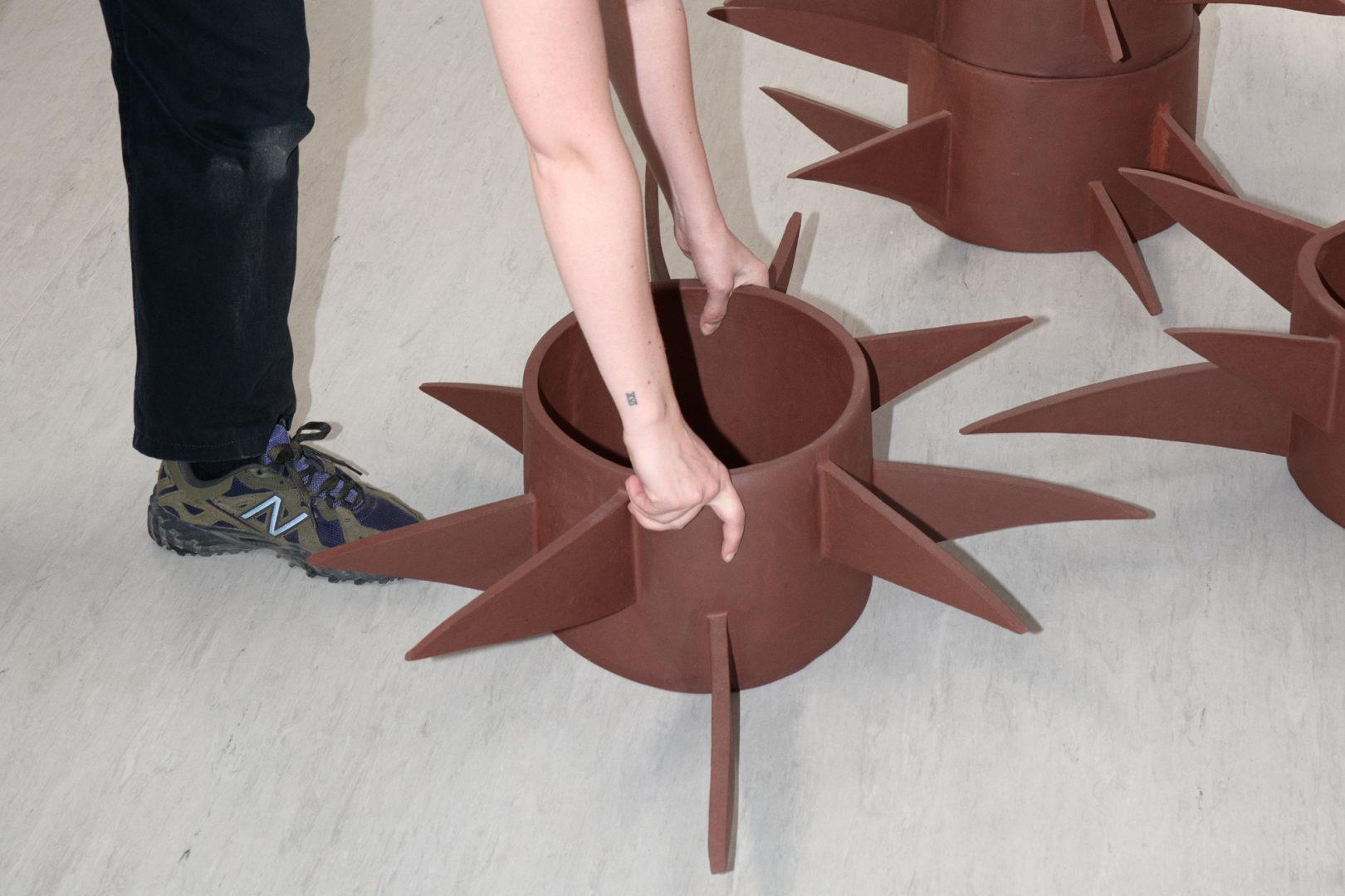 The work "soft defence" is a floor sculpture made of ceramic. The form resulted from the examination of man-made defense mechanisms. I particularly like the contrast between the fragile material and its aggressive shape. The opposites inherent in the work - hard vs. fragile, artificial vs. organic, and offensive vs. defensive - open up a field of tension by questioning and transcending the boundaries of defense.