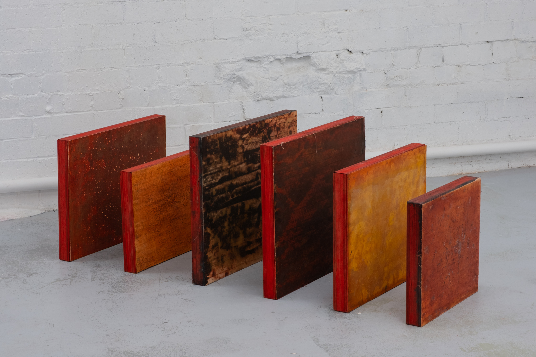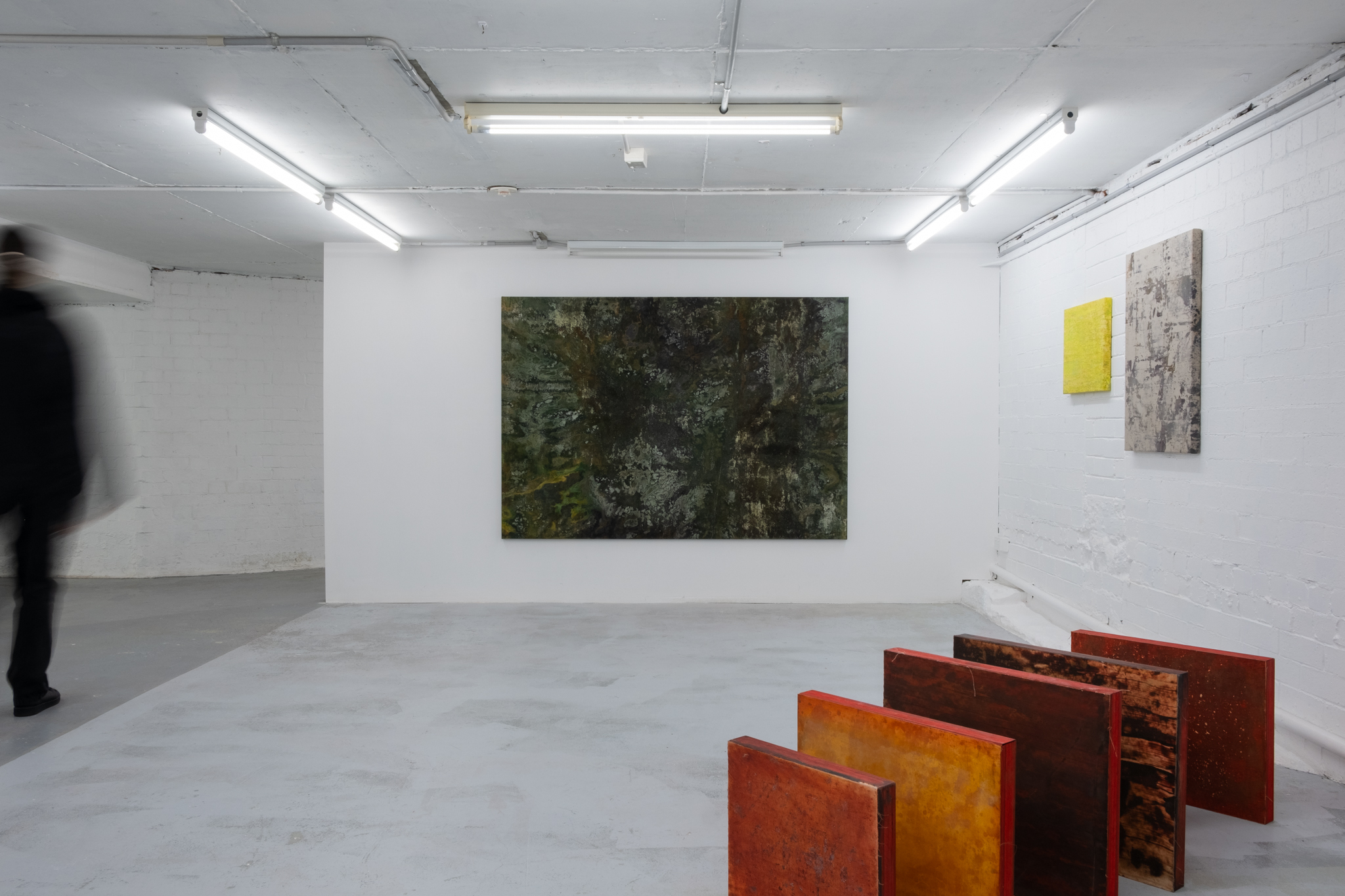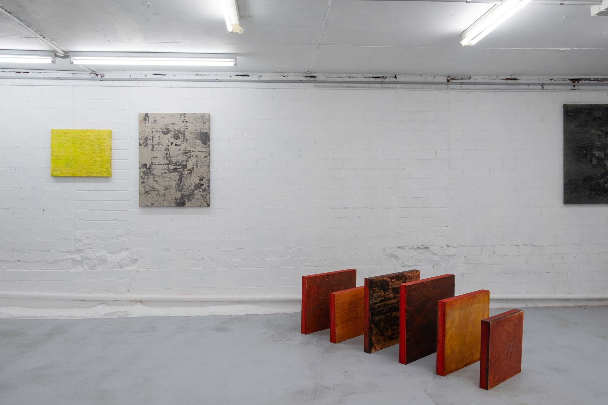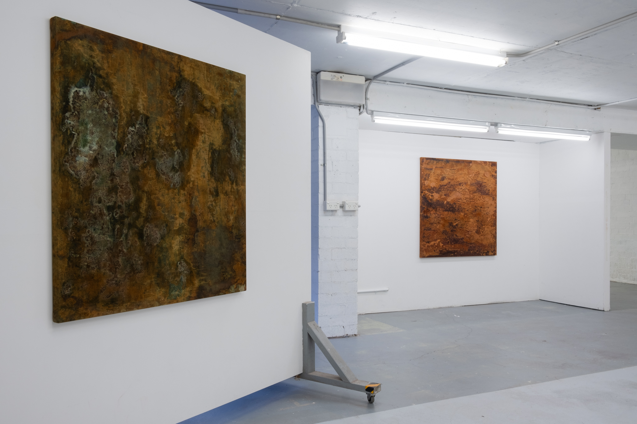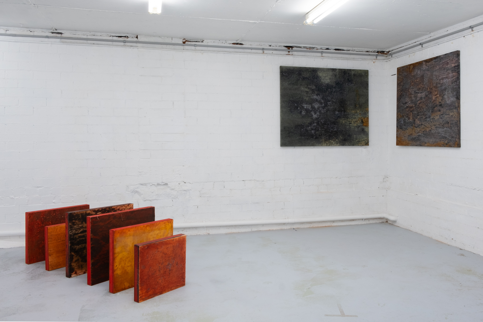 Signal to Noise is the first public showing of Taylah Hasaballah’s multi-year investigation into entropy, or energy drain. Paintings are made with metals, salts, powder pigments and acids to evoke hallucinogenic visions, hinting at images that never quite come into focus. The series forms an archive of what Walter Benjamin called ‘irresistible decay’, a distant echo produced through gradual and irrevocable deterioration to a time where signal no longer occurs.