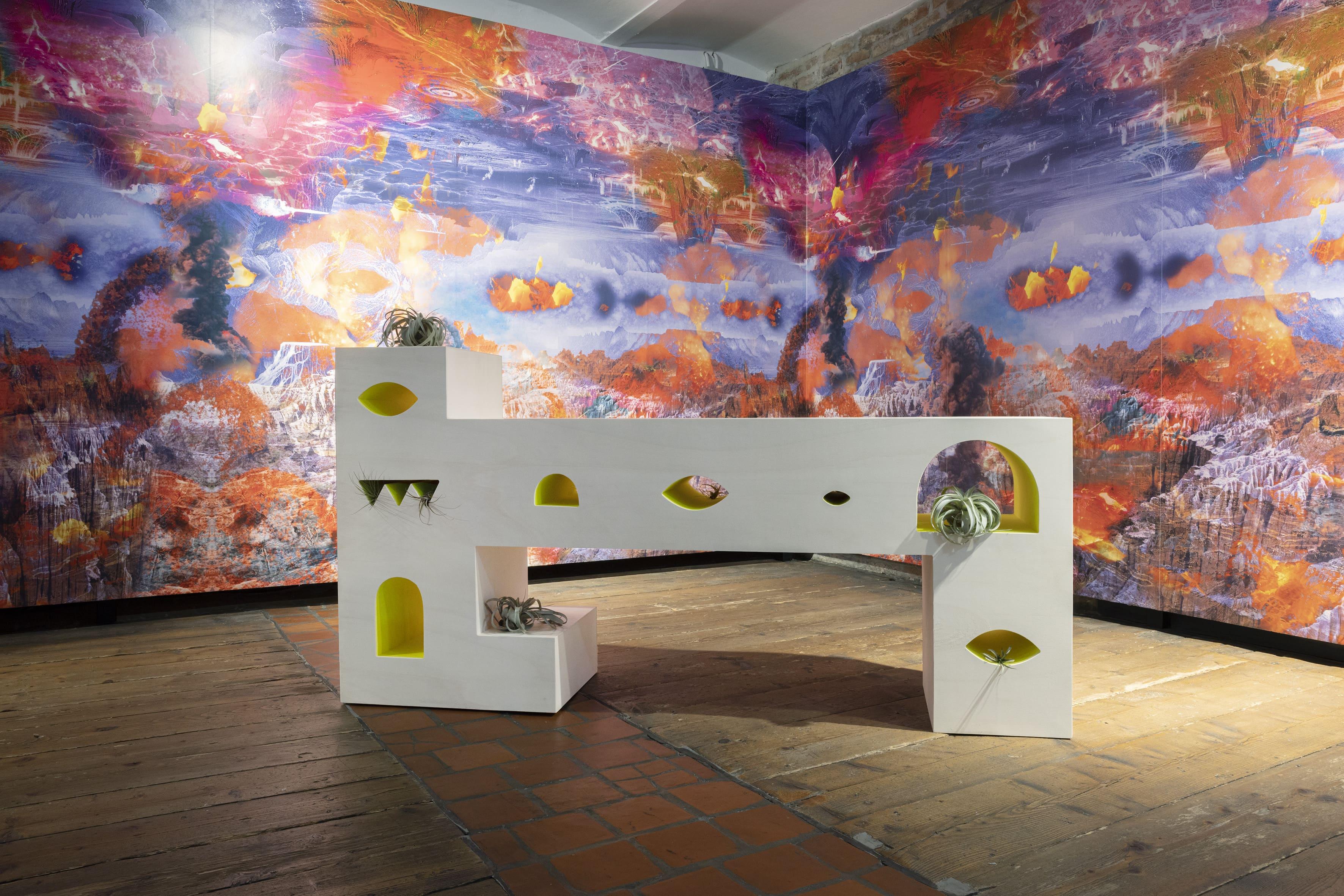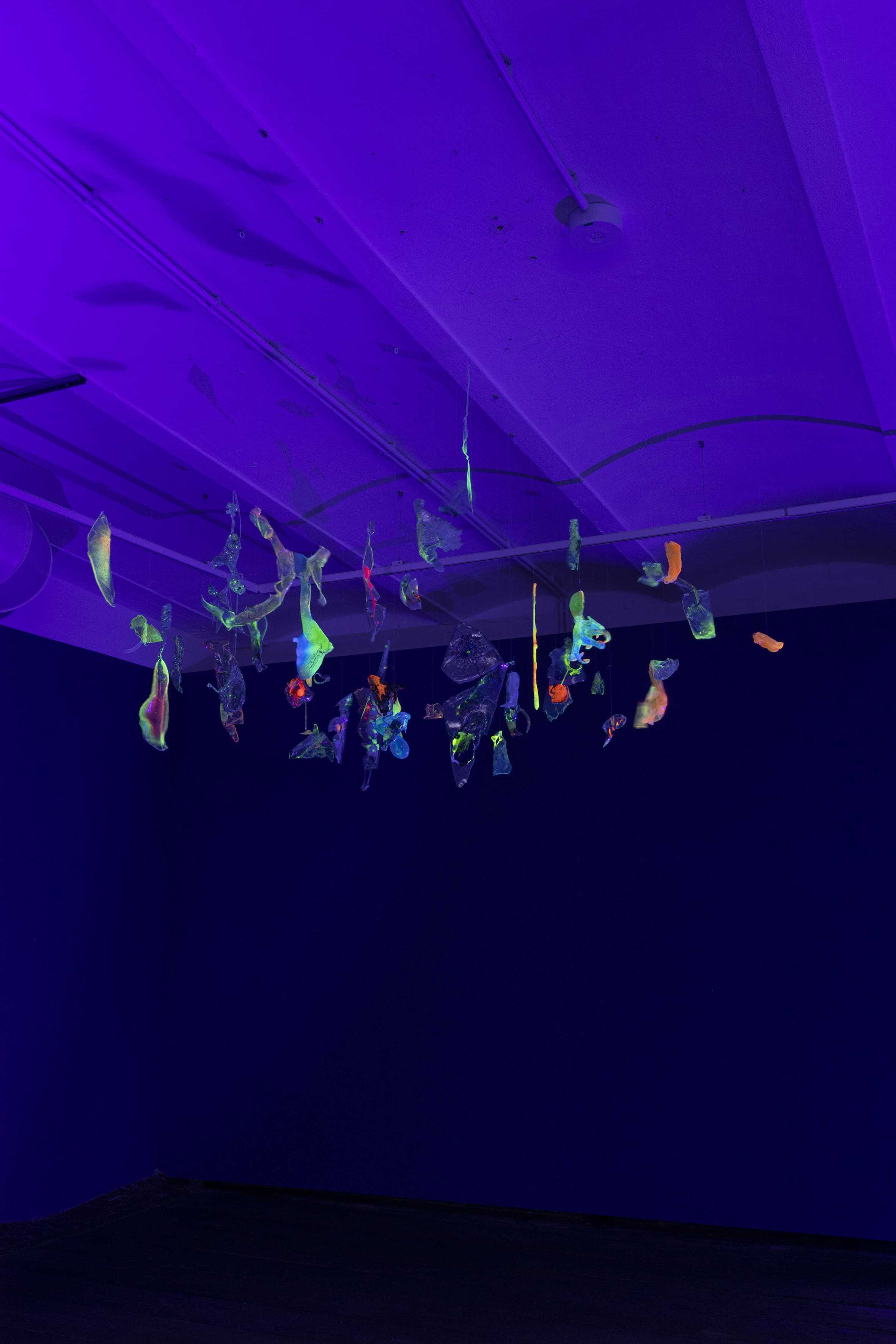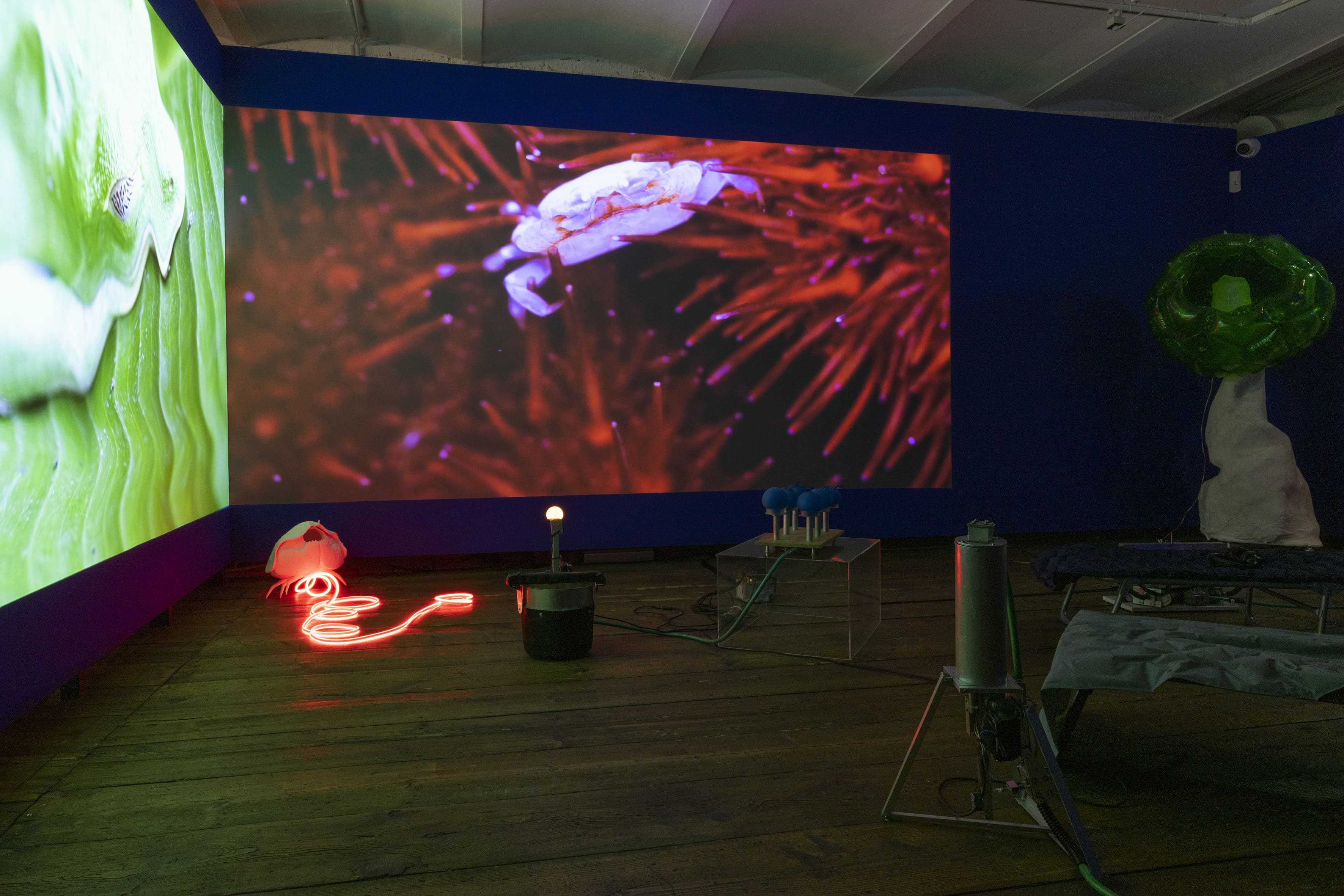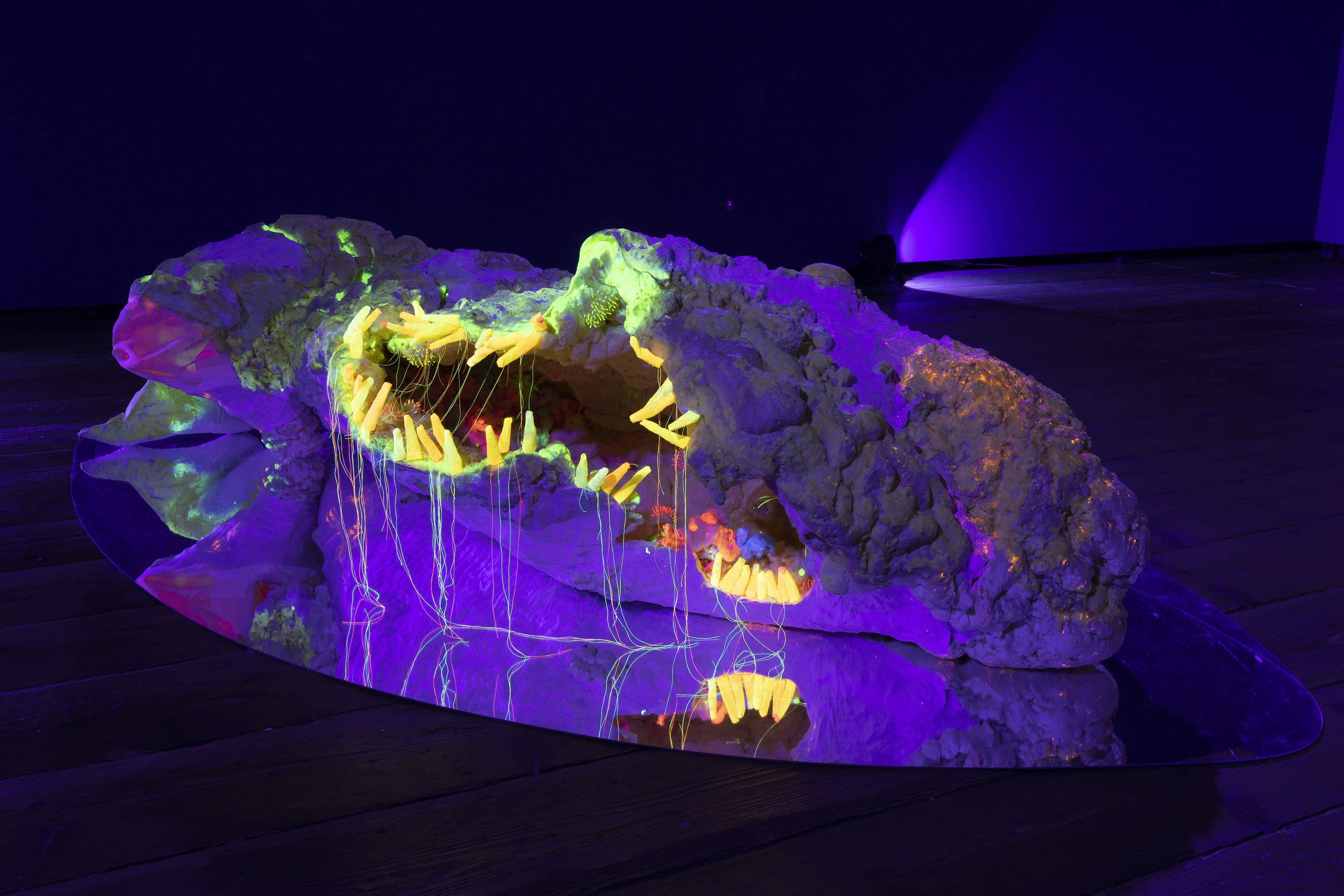 Developed specifically for the KunstHausWien, the multisensory exhibition presents two worlds on two levels: starting from the Archean Eon, when the first life arose on the Earth thanks to an oxygen-rich atmosphere, the scenery transforms into a magical fluorescing underwater world that enables visitors to plunge to the depths of an ocean populated by fantastic creatures and microscopically tiny phytoplankton.