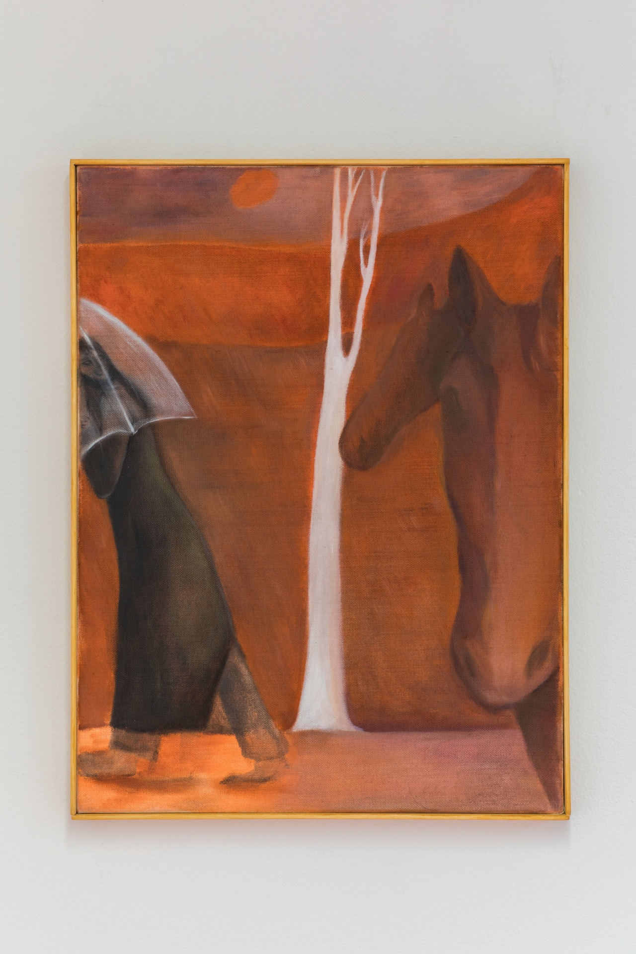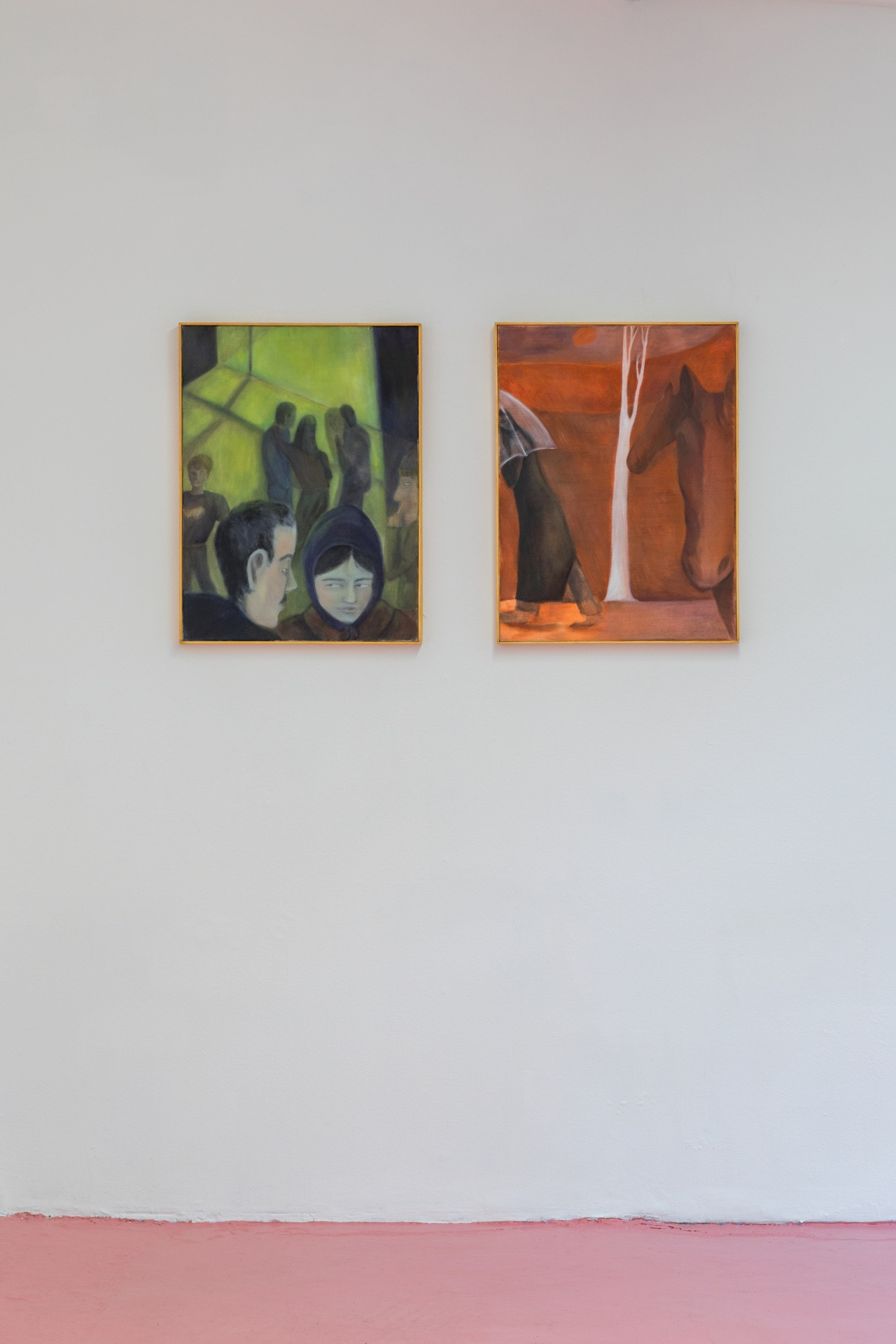 Both artists work with motifs that have a strong anthropomorphic quality - furniture, objects, even situations live and react to us, forcing us to reflect on our own identity and everyday rituals. The artistic grasp of the nature of things or situations by Tobiášová and Izsó brings to light the impressions that define particular phenomena for them when one is not looking, but rather just feeling. Although Tobiášová's canvases are highly imaginative, they carry with them something frankly known, almost retrospective, moments that the memory only becomes aware of when it is not disturbed: in one, we observe the moment of drowning one's own still sleepy raw unedited reflection in the siphon of a jade basin; in another, majestic horses in the flood of the burning rural sun; in a third, the vernissage guests in the dim city lights.