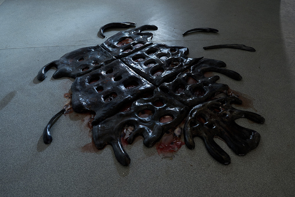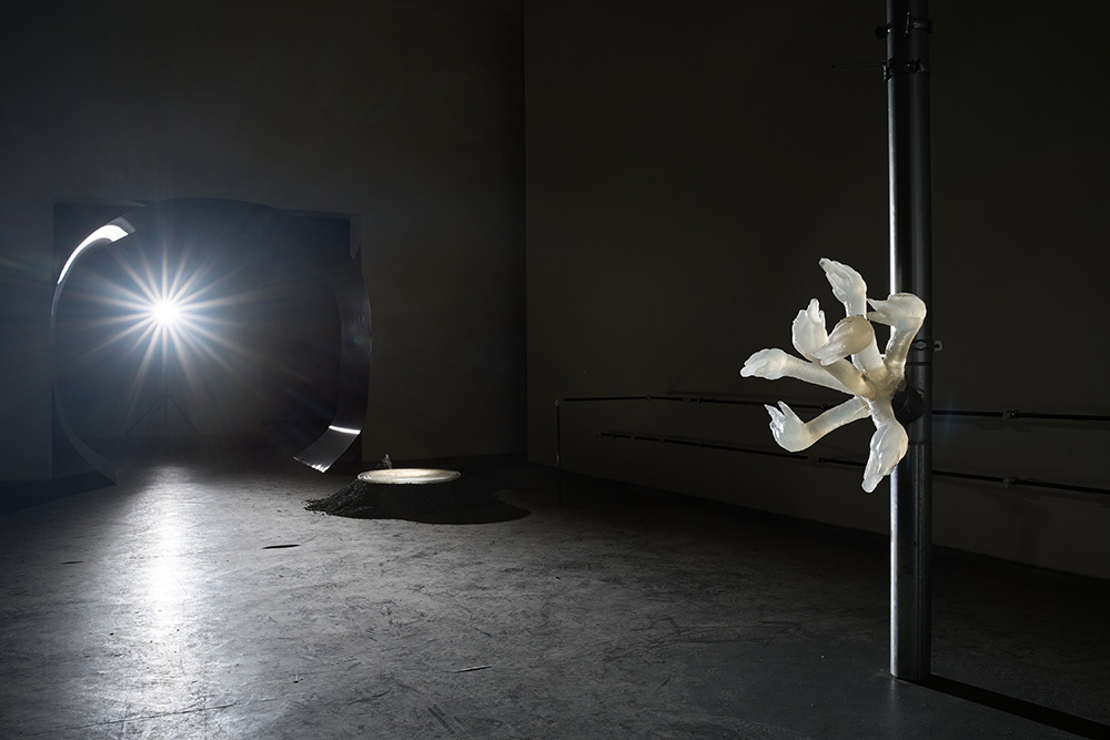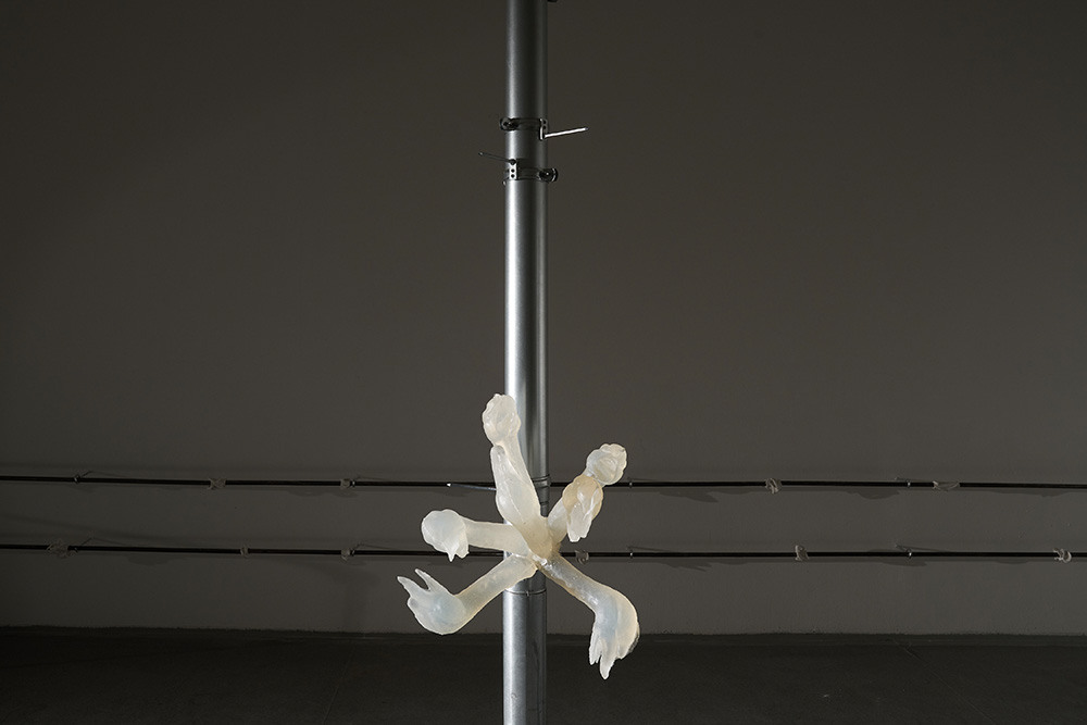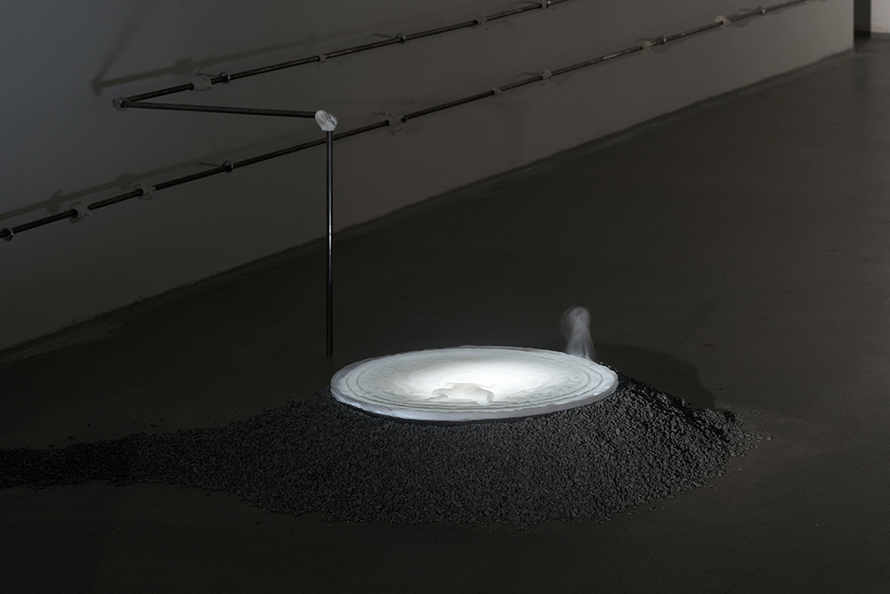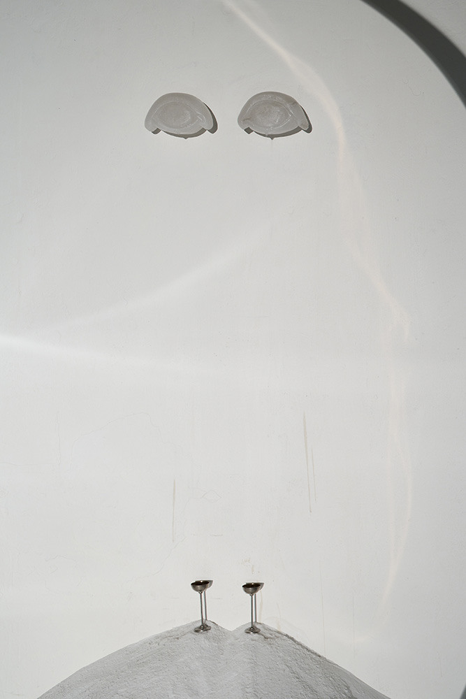Elsewhere, it merely dripsâfrom eyes shaped by their own product, salt. Salt is an index of different forms of memory, from mineral to emotional, through which hidden processes are communicated. This poetic form of nonverbal communication is another moment in the revelation of a subterranean narrative. Yet, the scene remains a fragmentâmanhole covers hint at its further expansion, at layers that remain elusive. Their embossed surfaces, inscribed with Enter the Liminal, invite us to cross yet another threshold between the accessible and the hidden. Just like the escape ladder, which serves as the open-ended conclusion of the entire environment, it becomes another entry point, making present what lies beyond our sight.