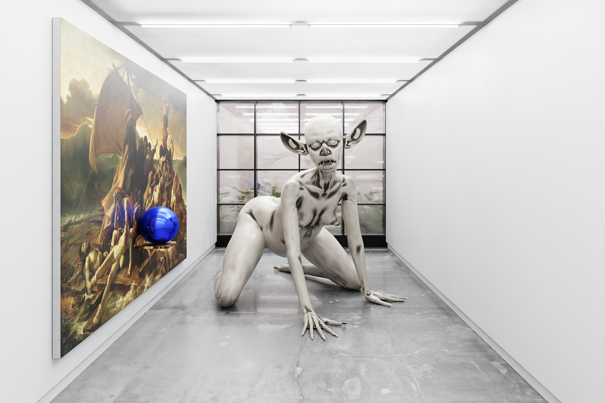 Not by happenstance, these two works are arranged as mythic foils, each nourishing and poisoning the other. The show at Sweet World makes its home in the fulcrum that emerges between Koonâs Gazing Ball and Ficarraâs Chocolate Goblin: gloss and fracture; the prayer and its blasphemy; the banquet and its purge. The show insists on lingering at this doorsill, enduring in that queasy simultaneity, wherein the audience may also inhabit the glint between fiction and reality.