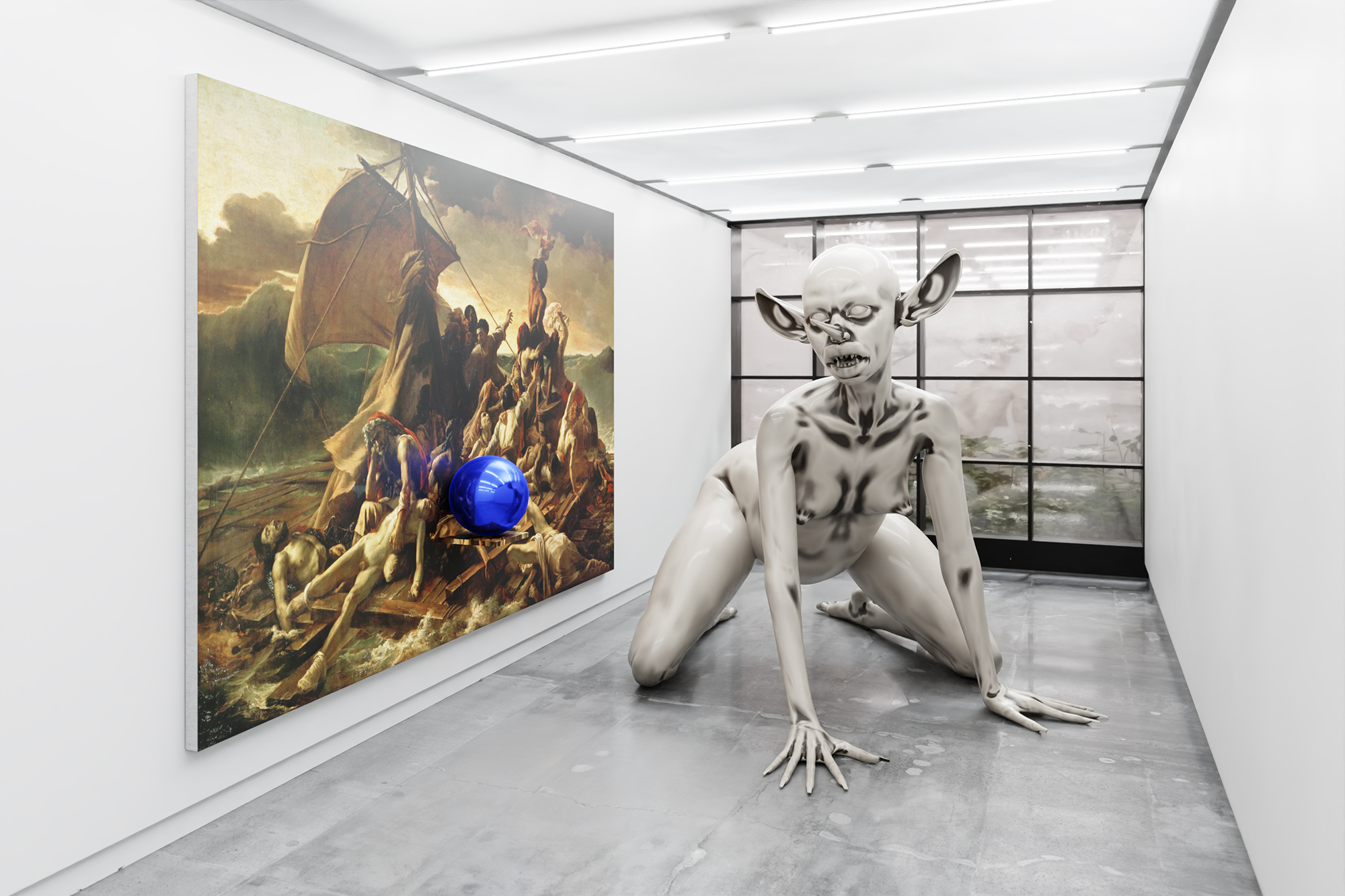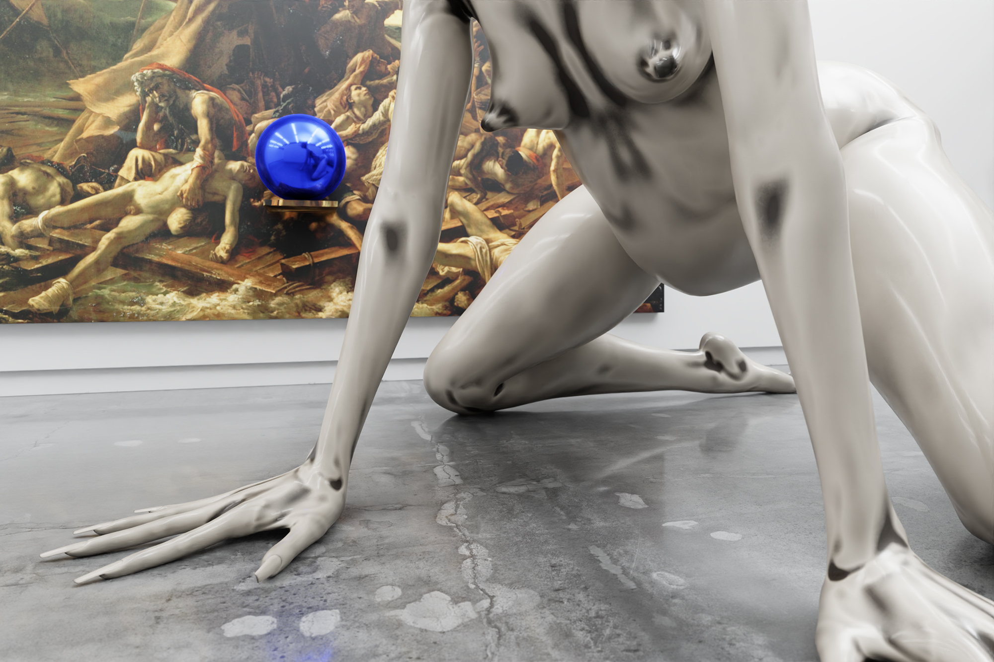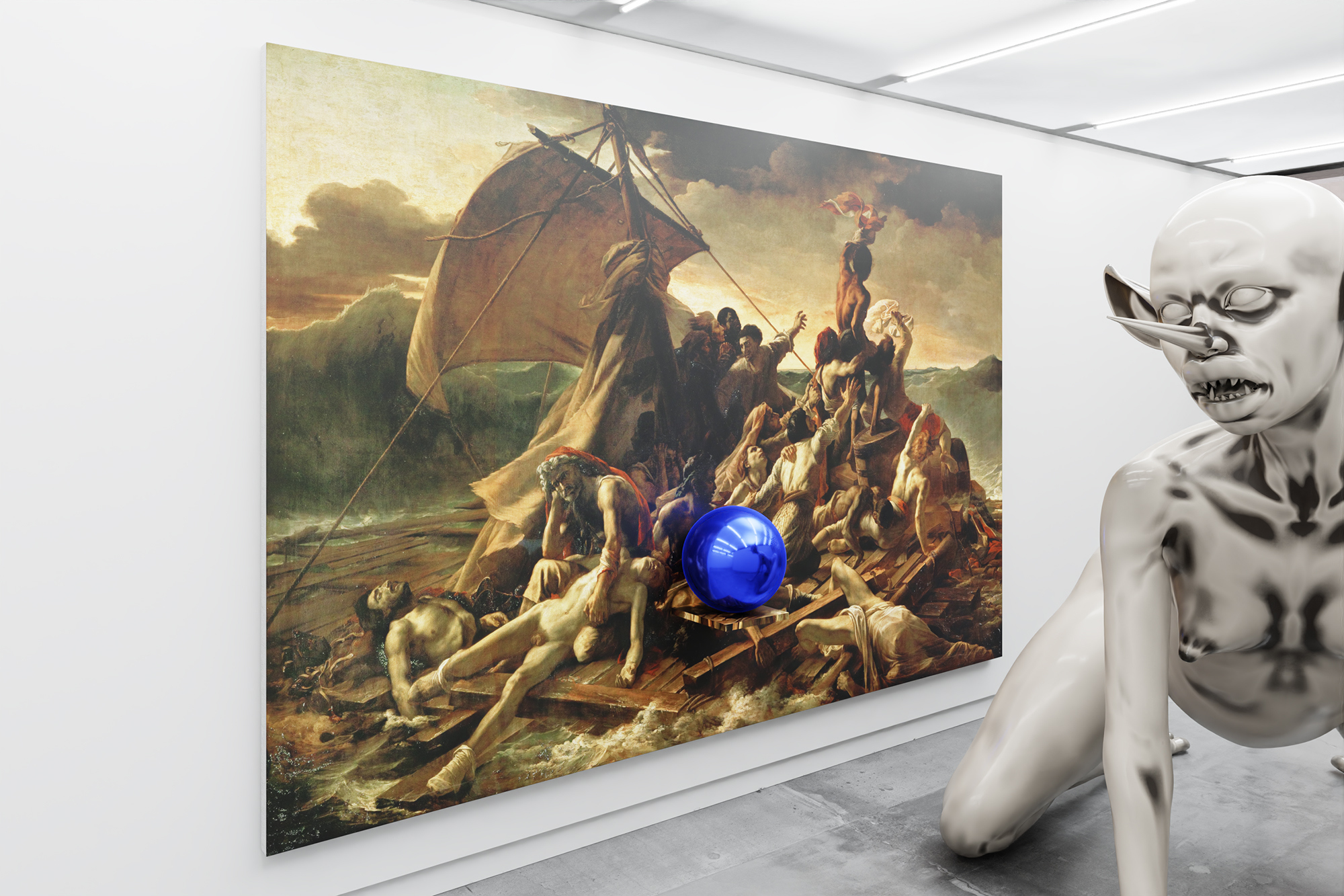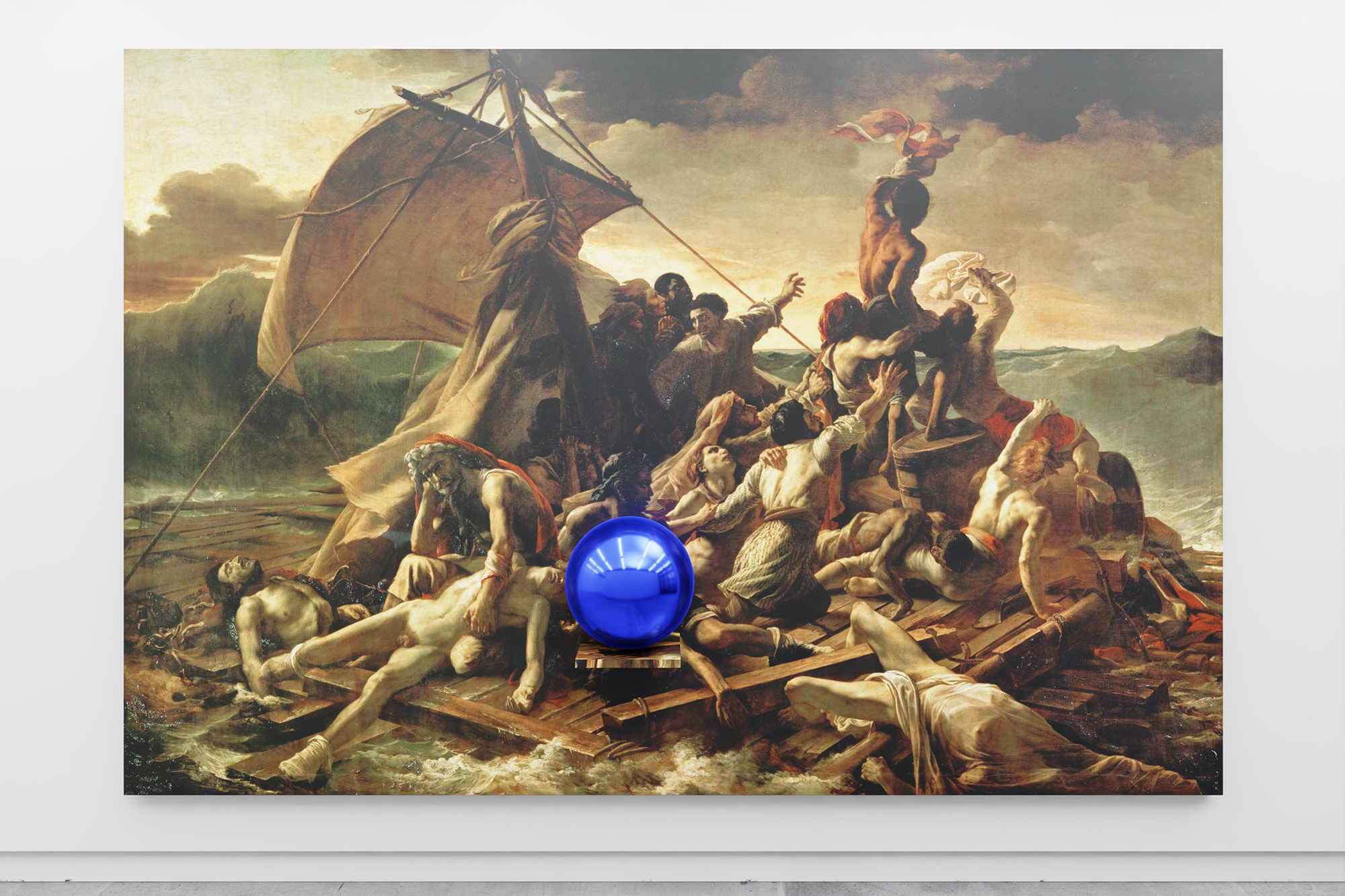Gazing Ball is pure ornament: an oil painting that outwardly beckons with its perfect, unblinking sphere. It might be a drop from heaven, or a marble prised from a childâs pocket. Yet, behind it, flesh sprawls across the raft in grisaille simulacta: bloated torsos, livid limbs, figures that clutch at nothing, their agony agleam with souvenir-sheen. Here lies human wreckage cellophaned in consumer culture, Gericaultâs rot appropriated as kitsch monument. Koonâs practice is one that operates notoriously as factory, rerouting gesture and pigment with the kind of catholic precision wrought only by a legion of outsource. Always immaculate, complete.