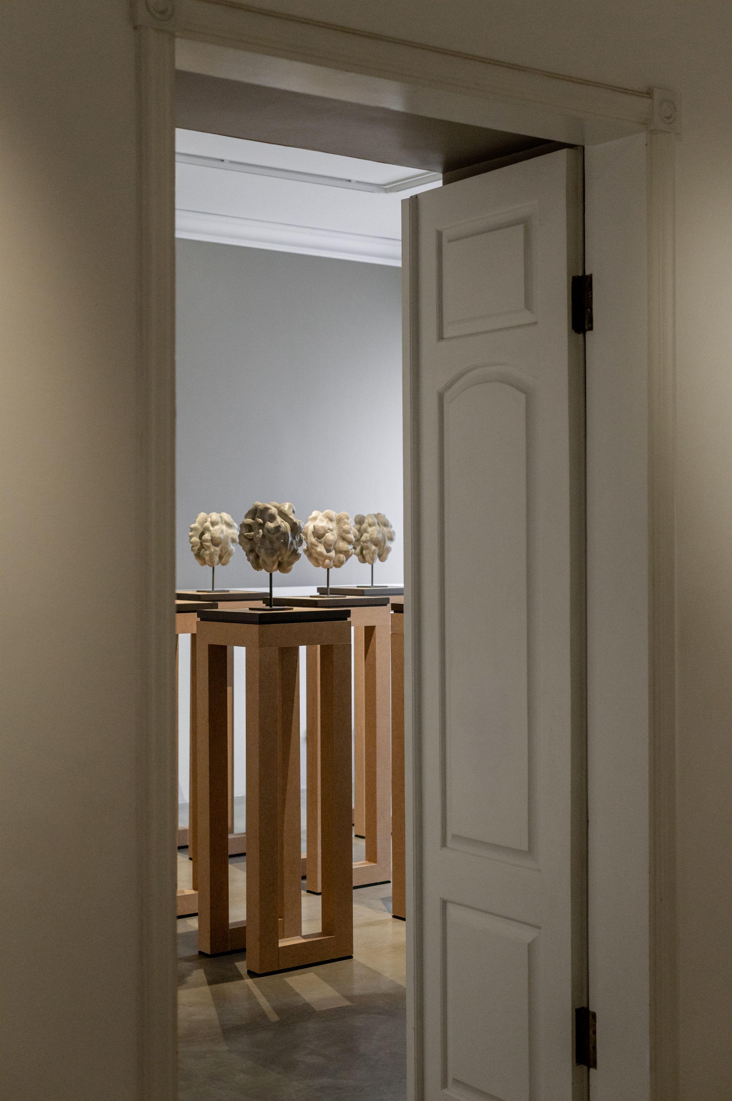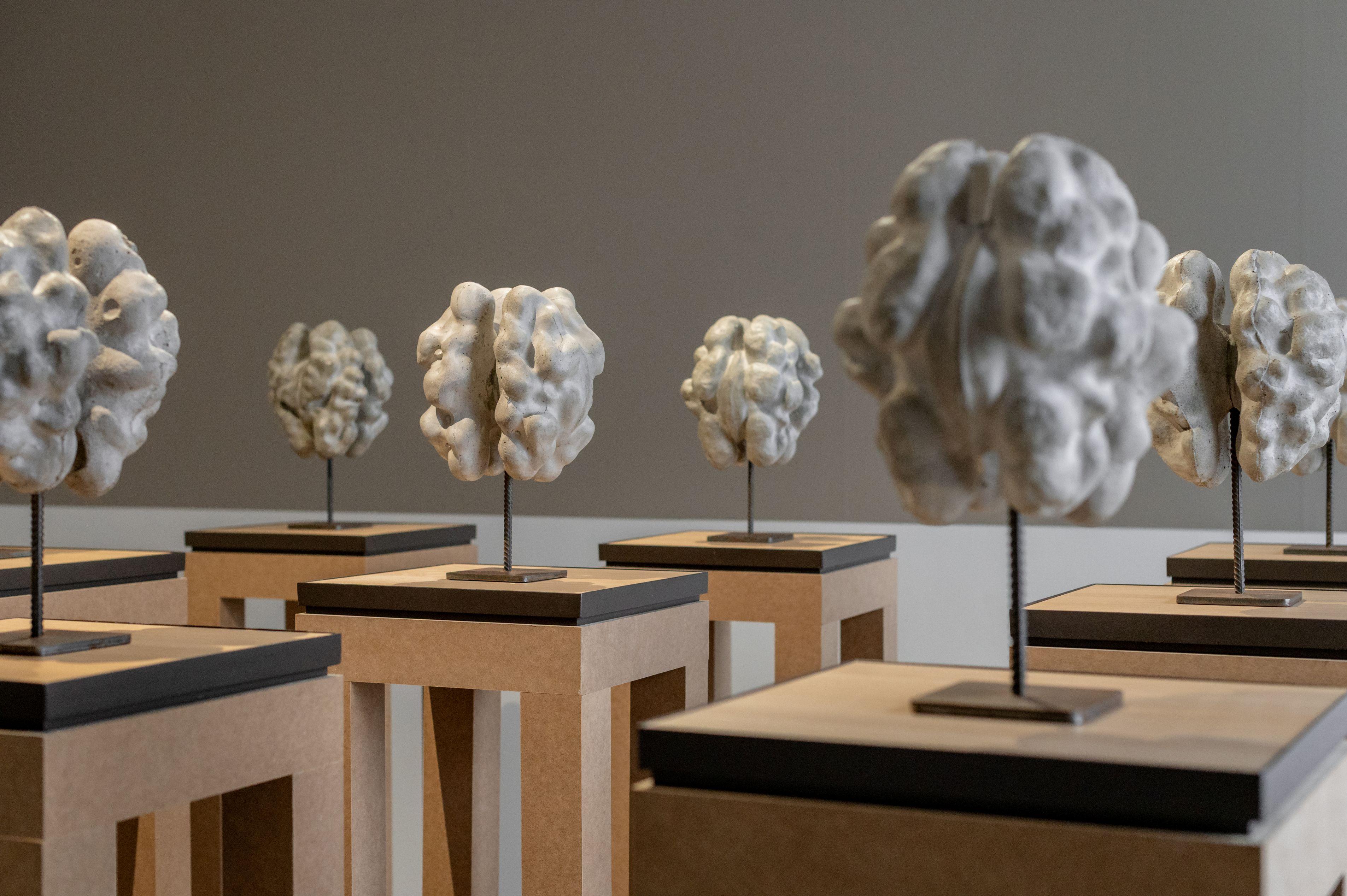 In his latest exhibition The Human Factor. Other Sides Erminas questions the notion of beauty and aesthetics. Here, beauty becomes not only a matter of visual appeal but also of provocation, as the artist investigates the boundary between ornament and function. He appropriates two seemingly unrelated spaces – the Rodin Museum in Paris and a gym – to reveal how cultural and social contexts shape conceptions of beauty, models of representation, and cultural practices. In the museum, beauty is associated with tradition, sculptural canons and aesthetic ideals, while the gym embodies discipline of physical form and constant self-improvement. Within the exhibition, these contrasting spaces become metaphors, showing how the idea of beauty constantly oscillates between aesthetic image and function, between ideal and reality. Against this backdrop of oppositions, the artist re-stages and adorns spaces, where objects lose their original purpose and acquire aesthetic and symbolic value. Erminas’ works highlight contrasts, transformations of materials and functions, as well as elements of irony. The exhibition invites viewers to regard beauty and aesthetics as phenomena in perpetual flux, shaped by cultural and social tensions.